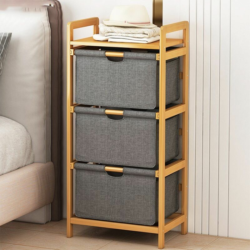 Этажерка напольная с выдвижными тканевыми ящиками и бамбуковой полкой, 45х32х70 см