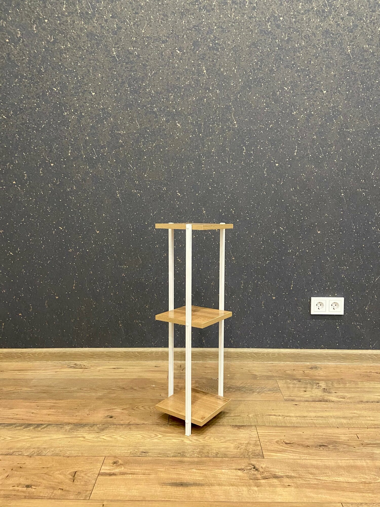 Этажерка STELLA 320-75 для комнатных растений 3 секции металл, ЛДСП, белая, дуб бунратти