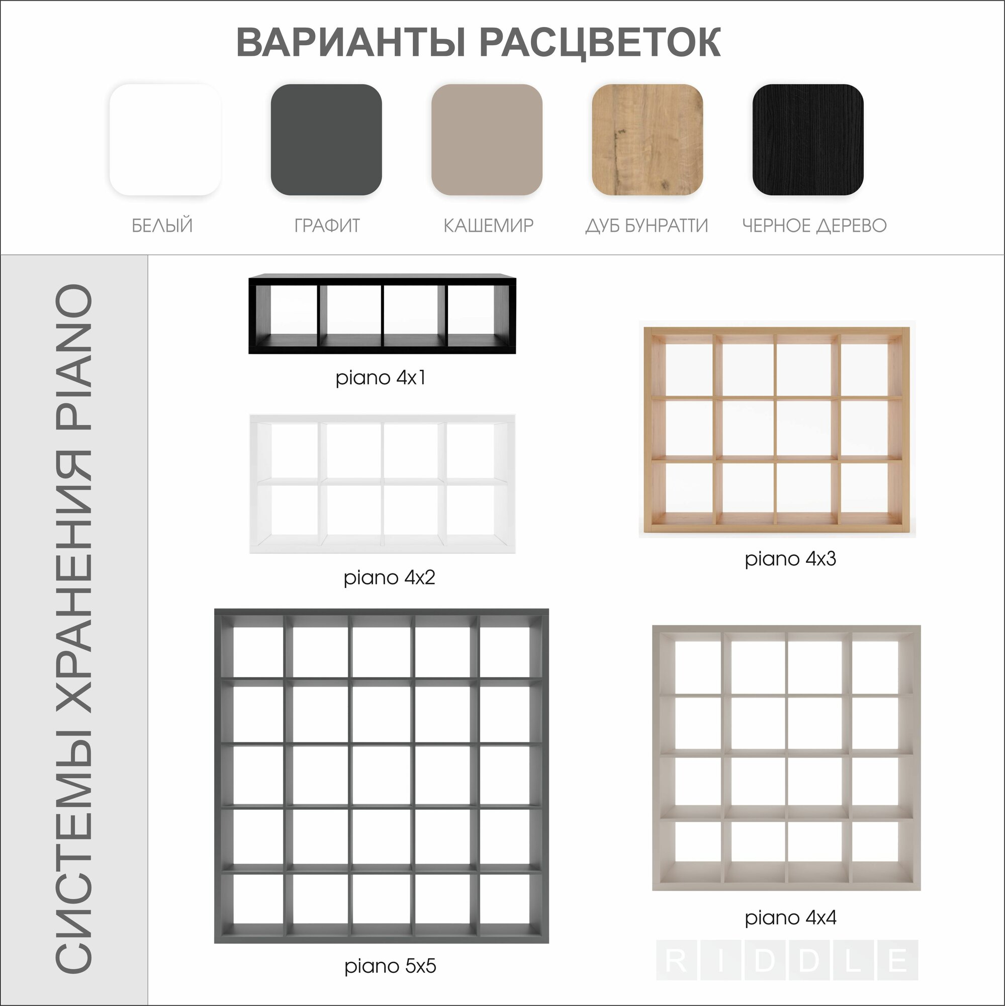 Стеллаж PIANO 4х1 на 4 ячейки, 1444х406х280, напольный и подвесной деревянный стеллаж для игрушек и книг в детскую, зонирующая перегородка интересное: