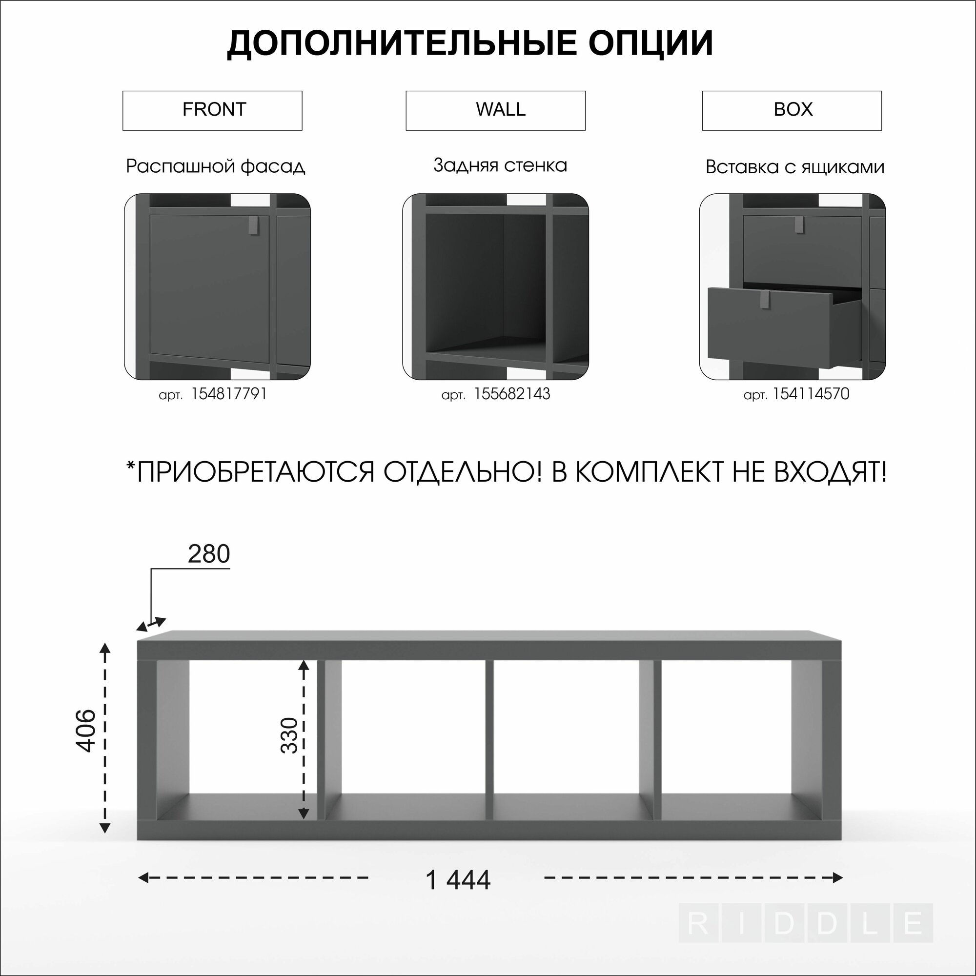 Стеллаж- система хранения PIANO 4x1 1444х406х280 мм, черное дерево