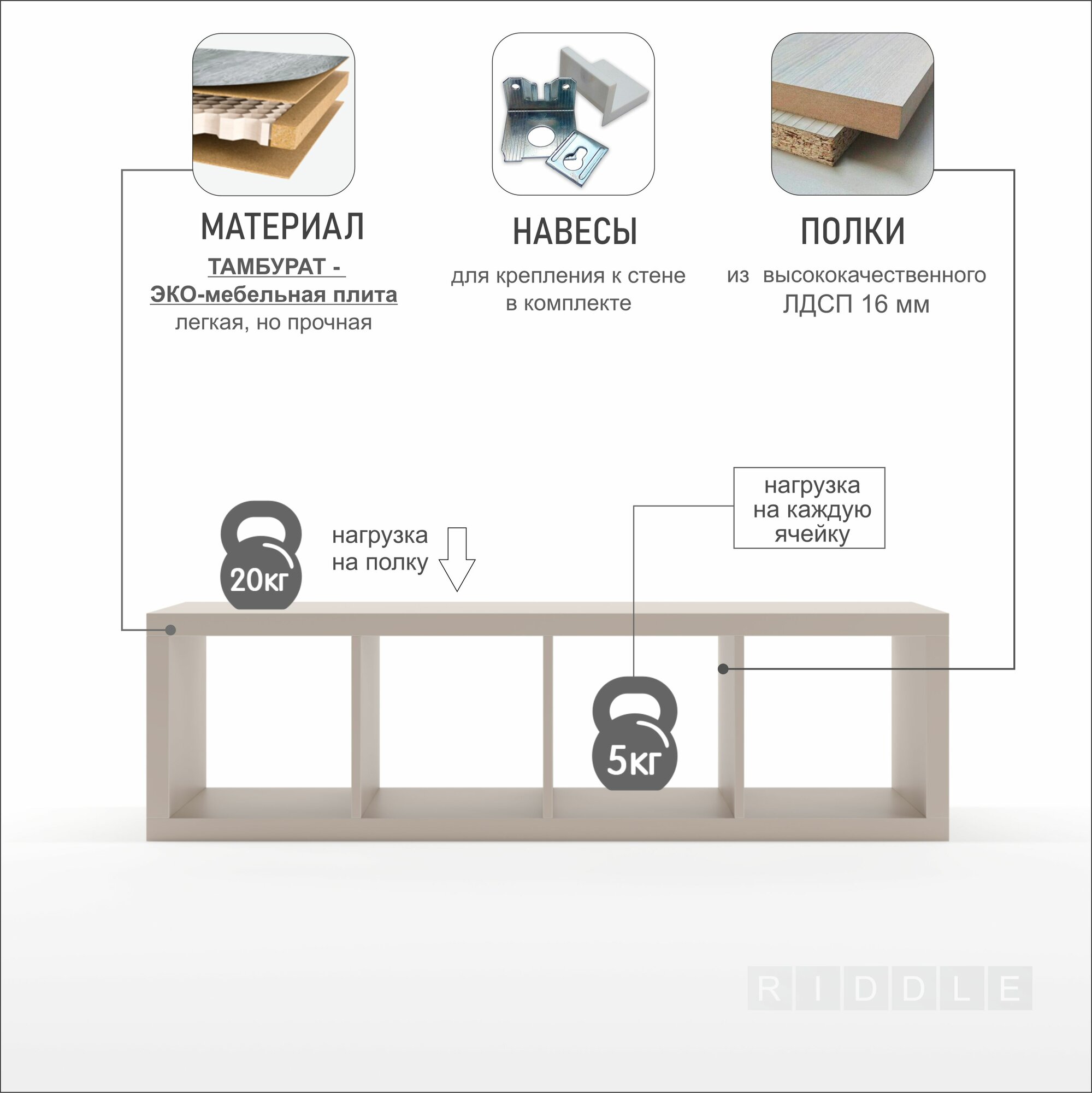 Стеллаж- система хранения PIANO 4x1 1444х406х280 мм, кашемир интересное: