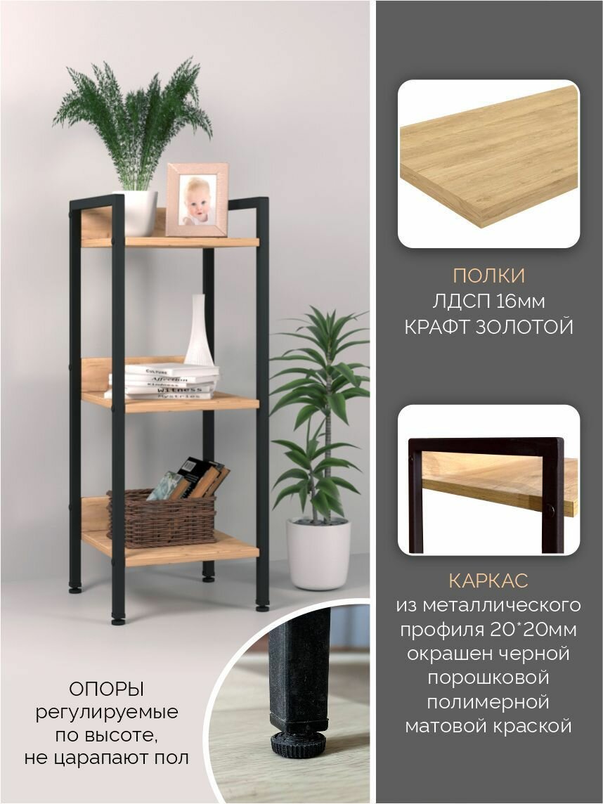 Стеллаж FORTUNA KIDS Версаль Лофт, металл, 4 полки, цвет дуб крафт золотой, открытый, 59х30х110 см
