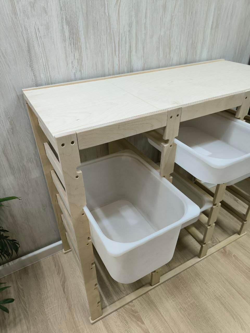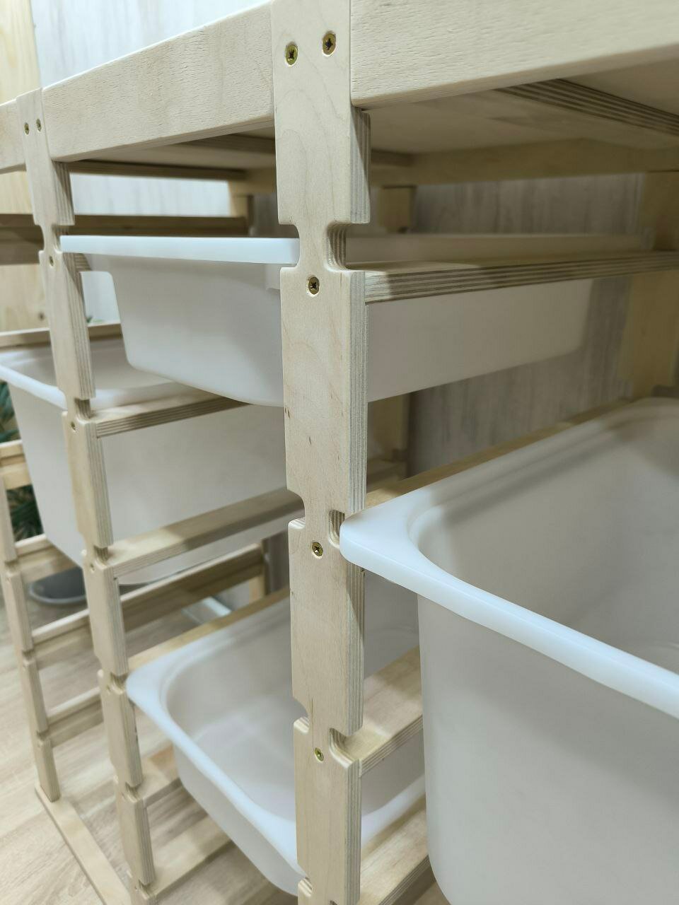 Стеллаж консоль для игрушек полкой из ЭКО дерева в детскую интересное: