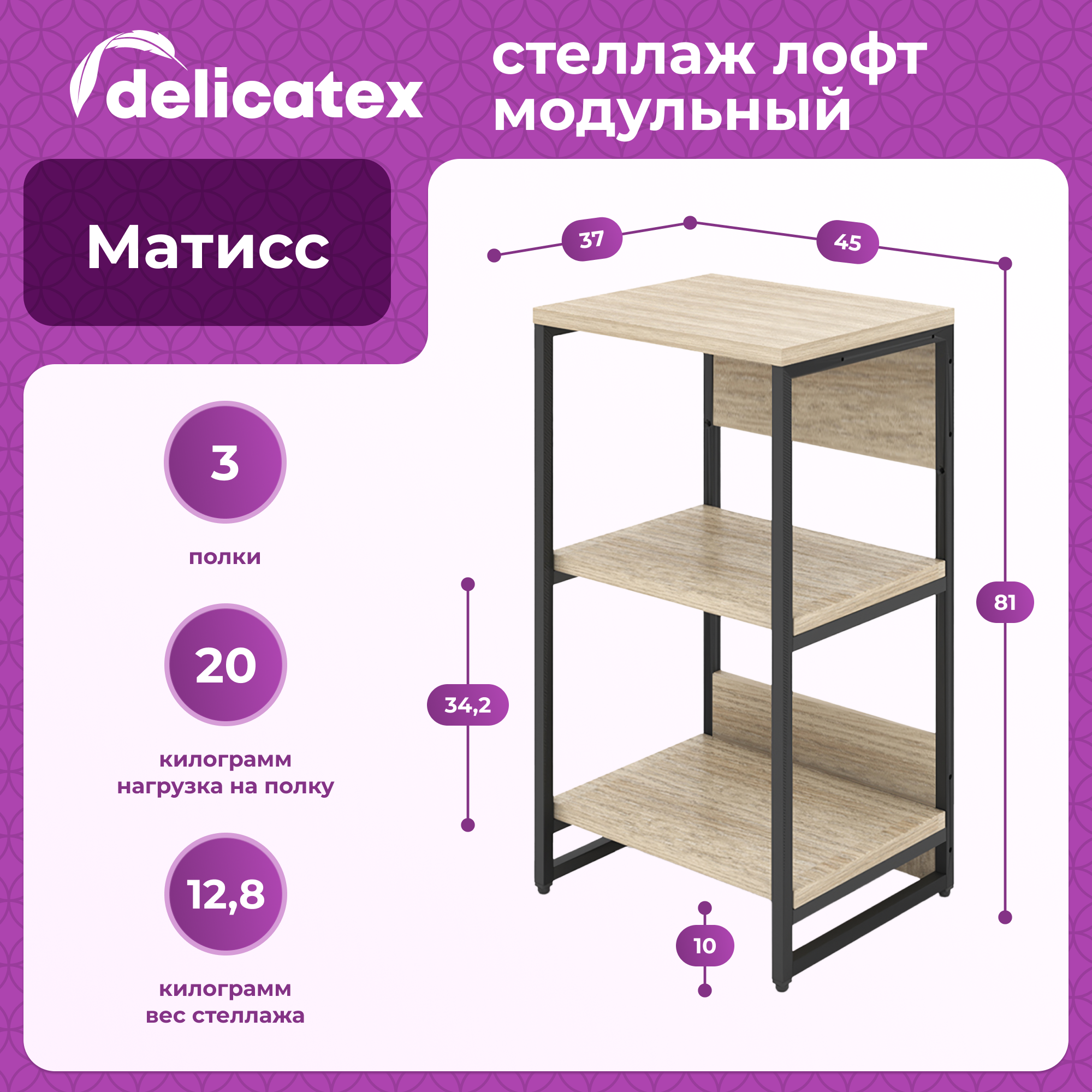 Стеллаж Матисс, цвет дуб Каньон, 45х37х81 см, Delicatex интересное: