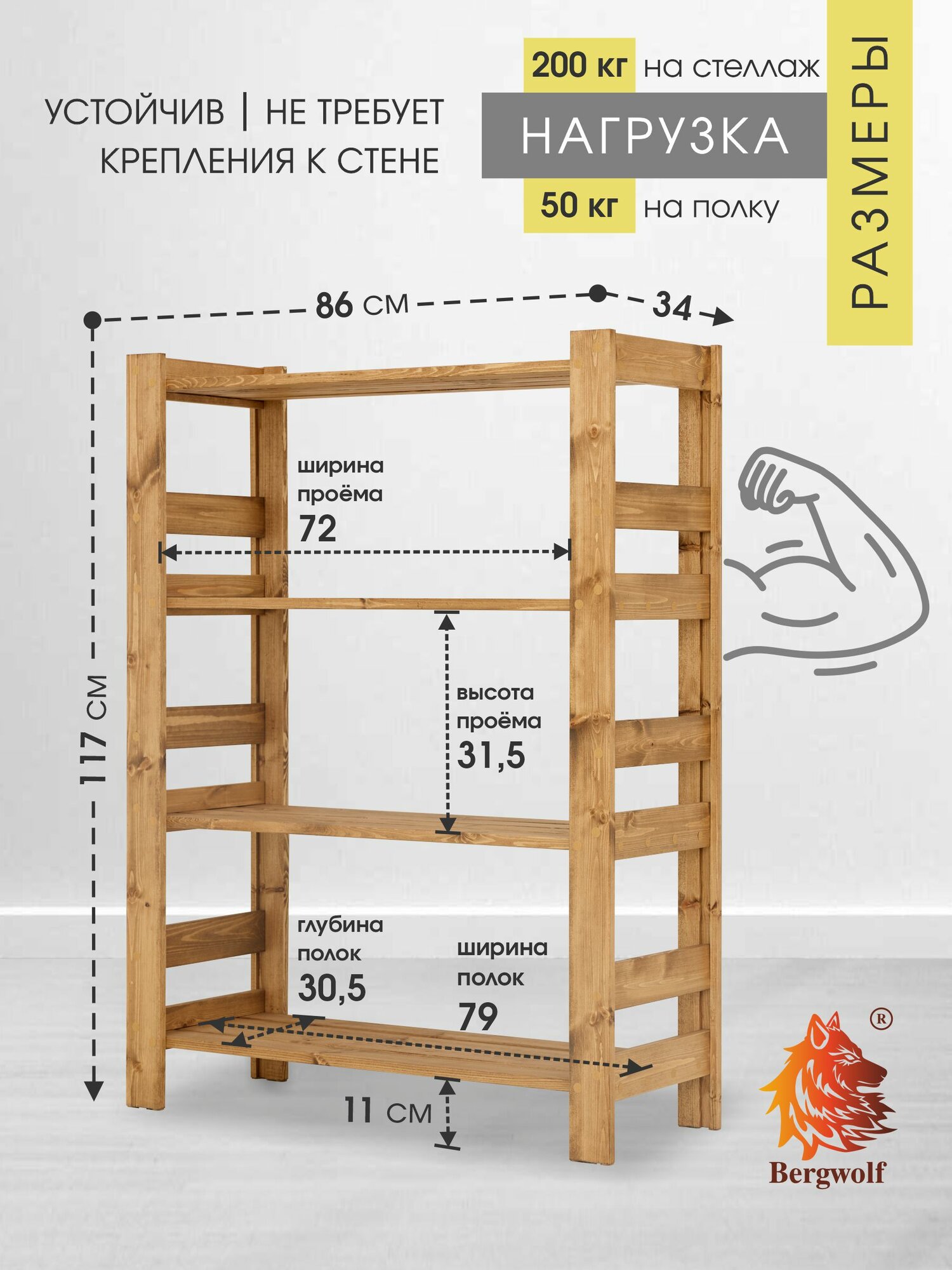 Стеллаж деревянный 117х86х34 см, покрыт маслом, 4 полки, нагрузка 200 кг интересное: