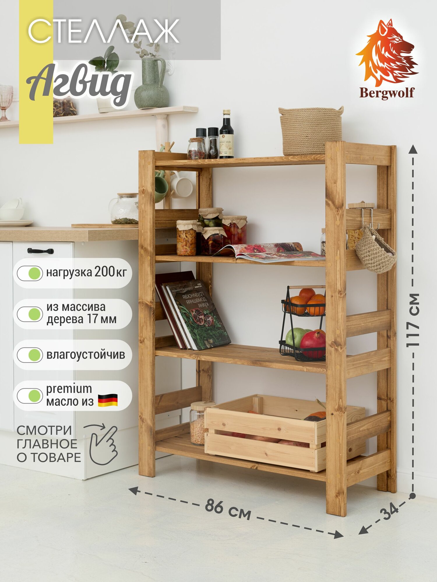 Ниже Вы можете прочитать отзывы на Стеллаж деревянный 117х86х34 см, покрыт маслом, 4 полки, нагрузка 200 кг, ознакомится с подробными характеристиками, посмотреть интересные обзоры и фотографии на Стеллаж деревянный 117х86х34 см, покрыт маслом, 4 полки, нагрузка 200 кг.