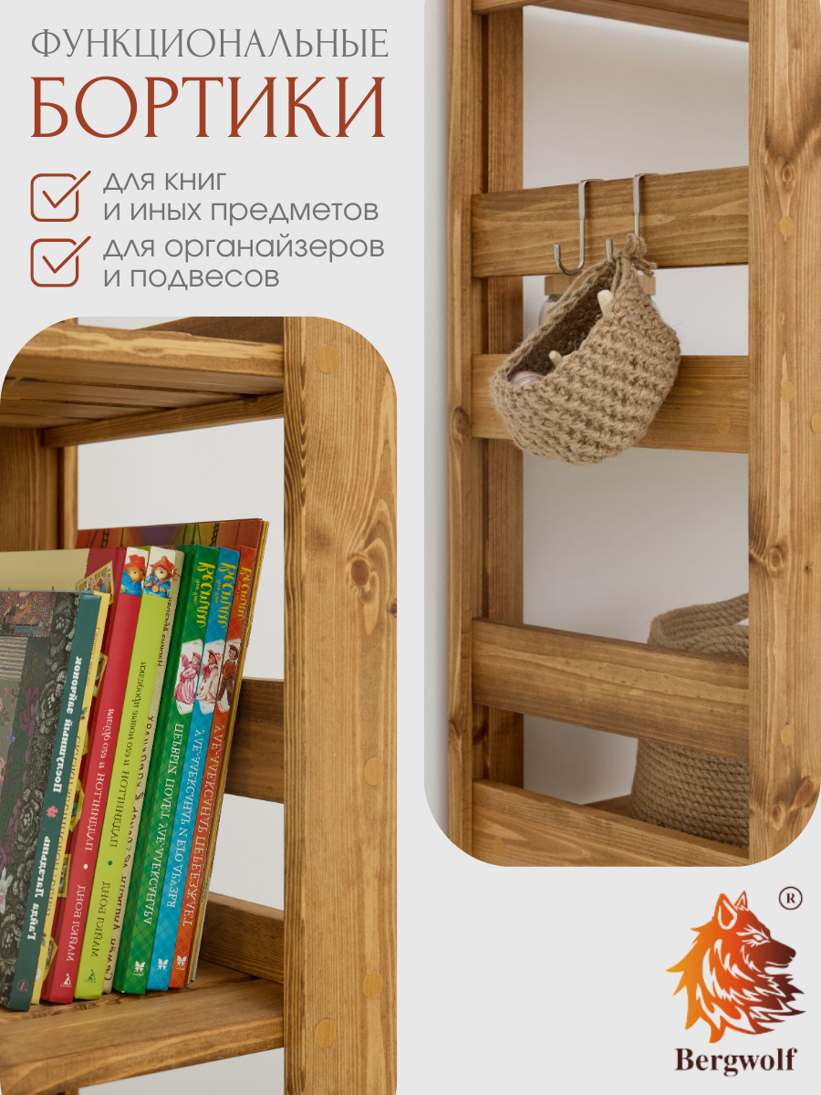 Стеллаж деревянный в детскую 117х67х34 см, покрыт маслом, 4 полки, нагрузка 200 кг