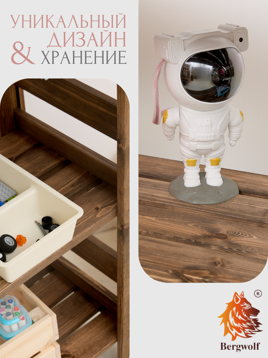 Стеллаж деревянный в детскую 117х86х34 см, покрыт маслом, 4 полки, нагрузка 200 кг интересное: