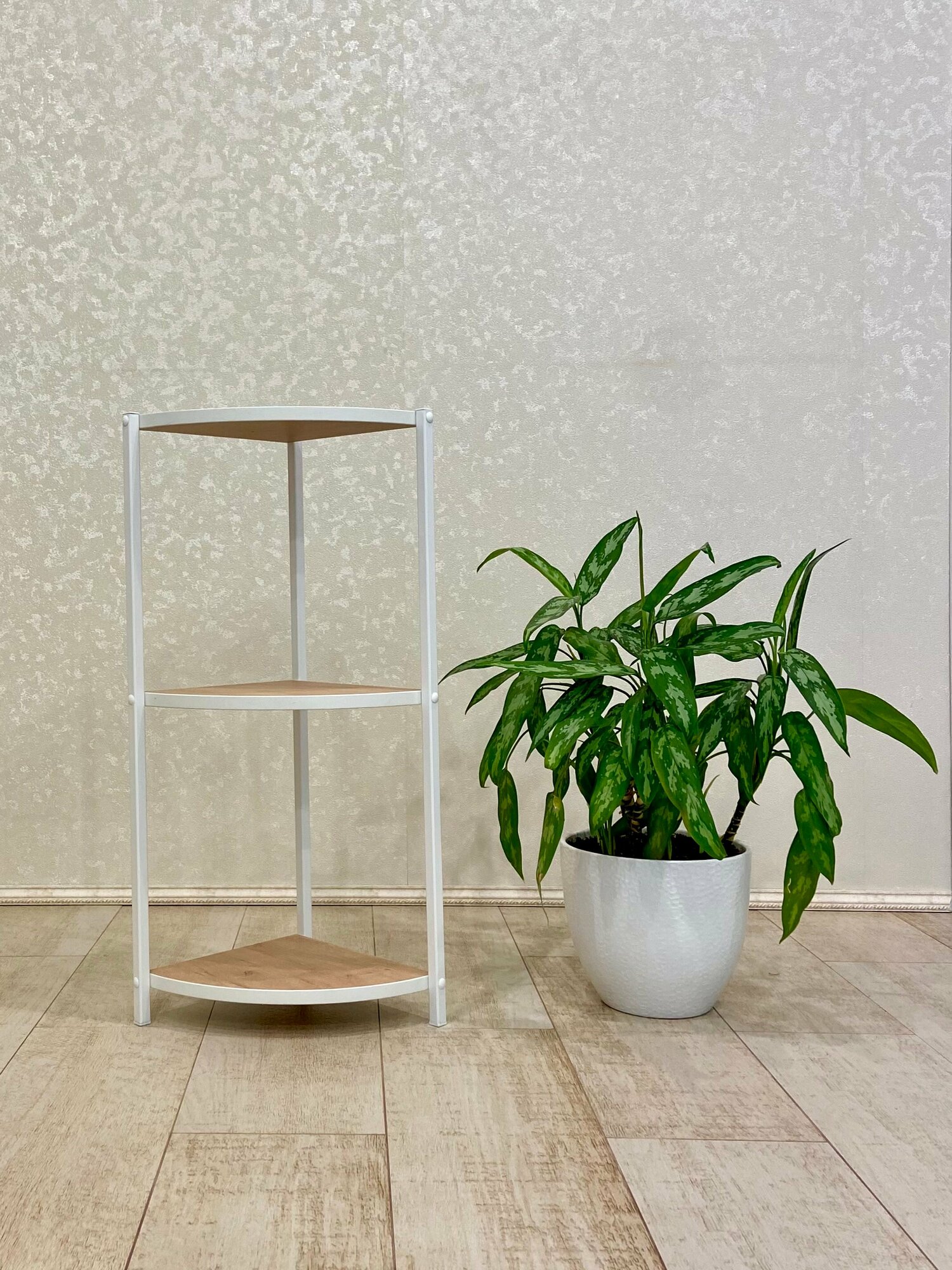 Этажерка угловая VIVA 423-100 для комнатных растений 4 секции металл, ЛДСП, черная, дуб бунратти+черная окантовка