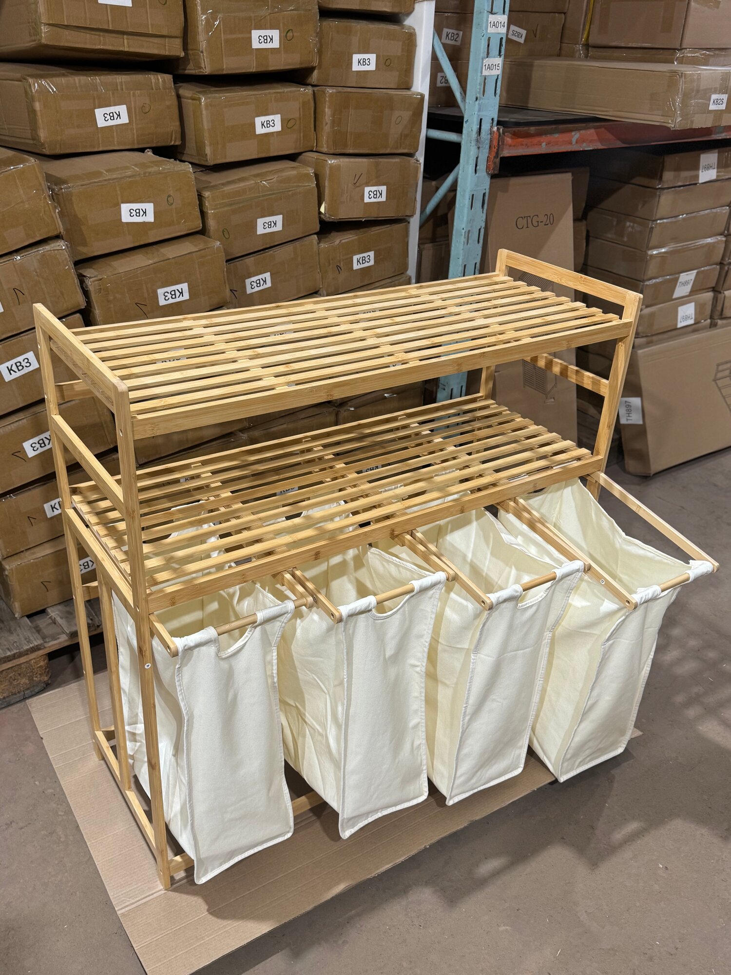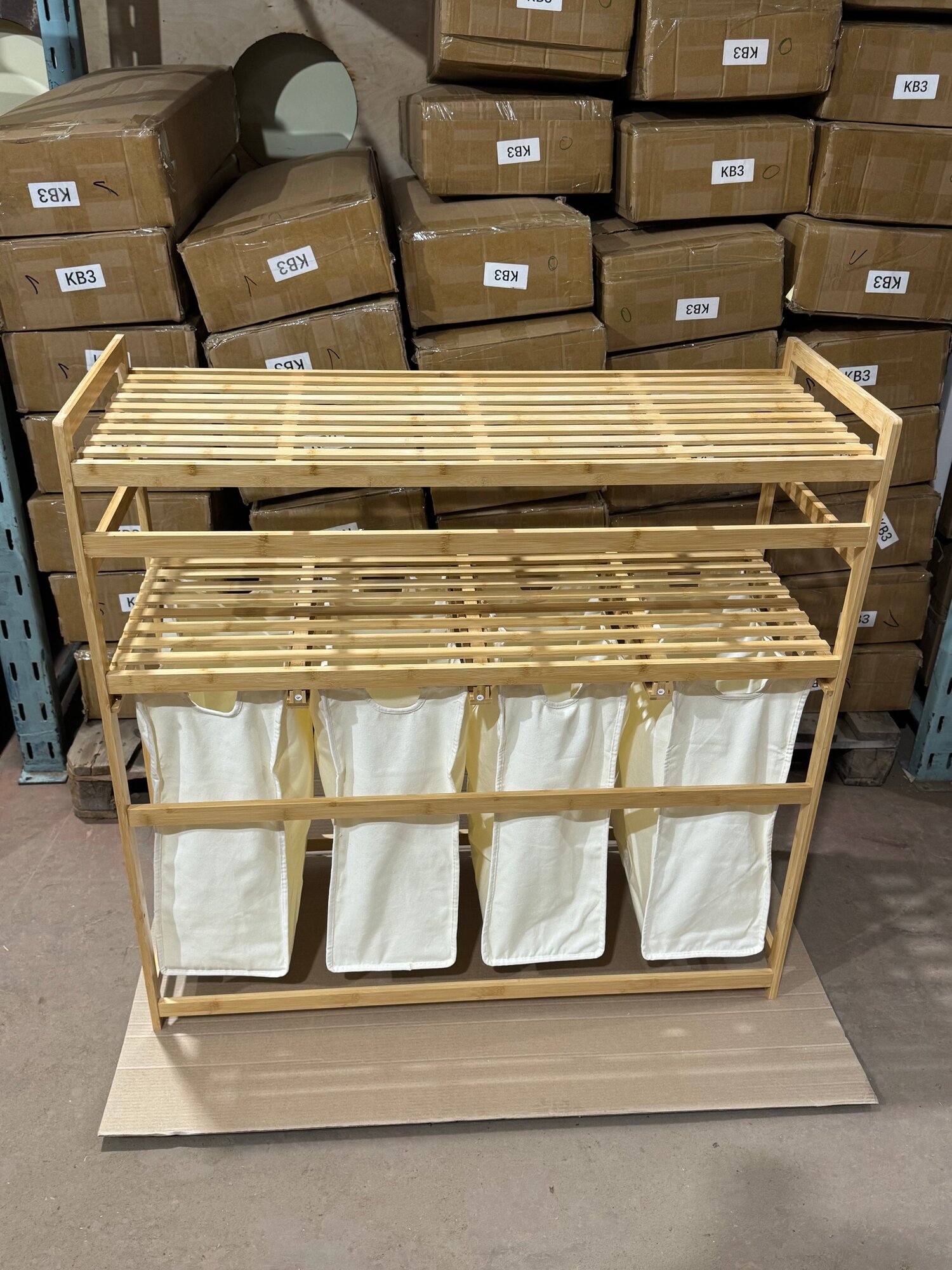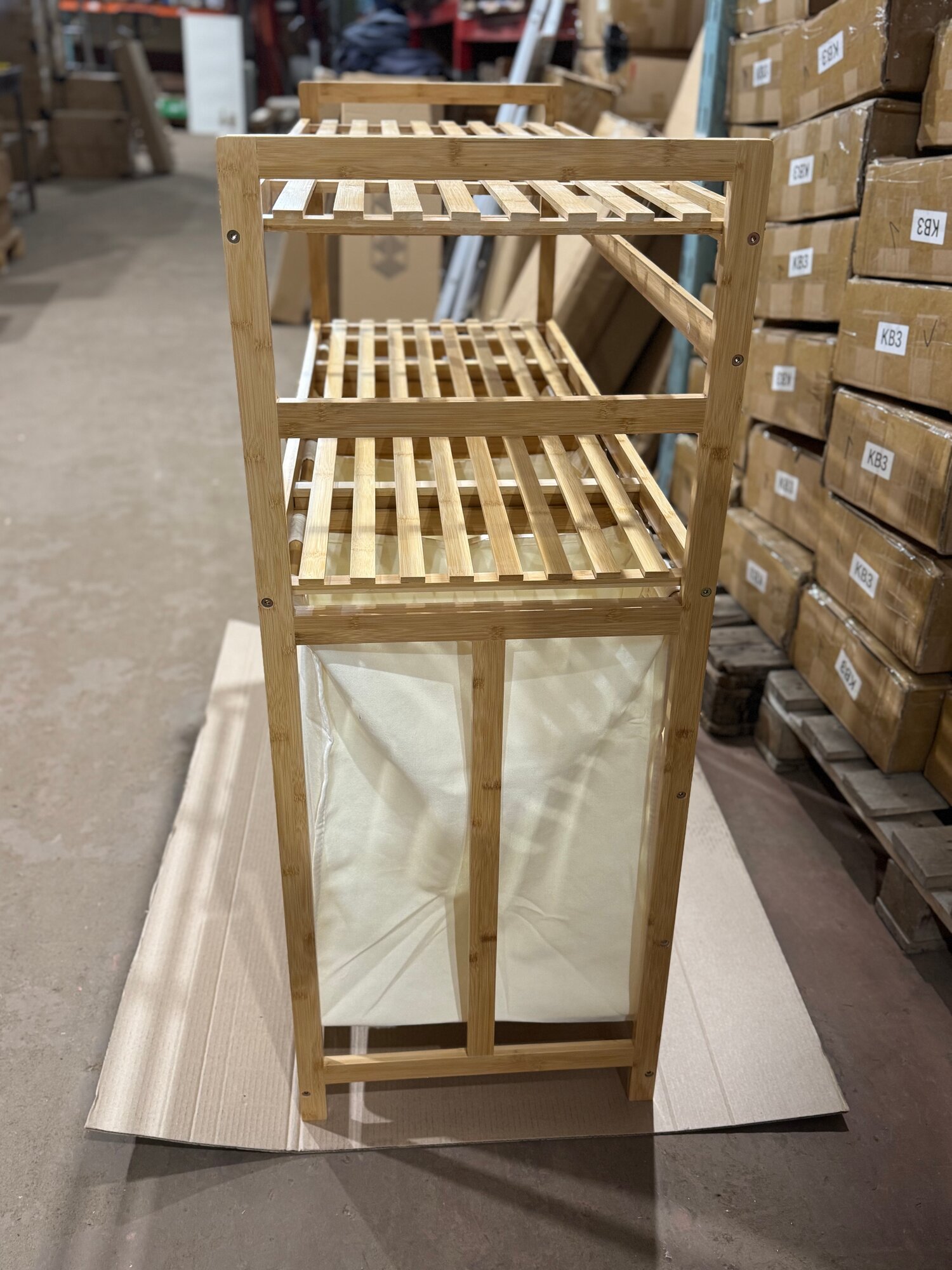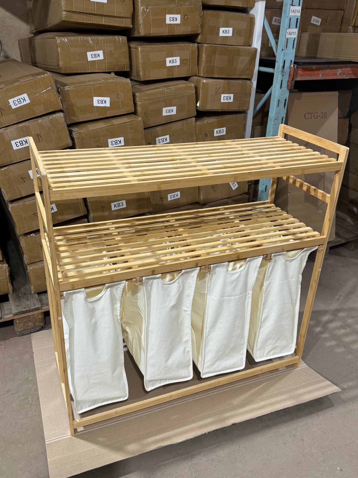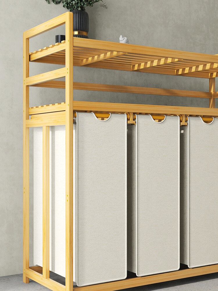 Этажерка для ванной из бамбука, Стеллаж для хранения с корзиной для белья Bambuchka, 50x30x143 см