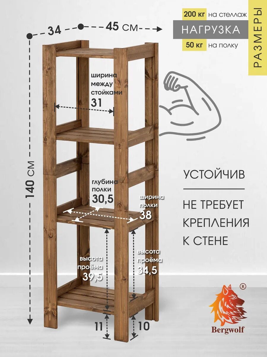 Стеллаж пенал из дерева 140*45*34 см, отшлифован, покрыт маслом, нагрузка 200 кг интересное: