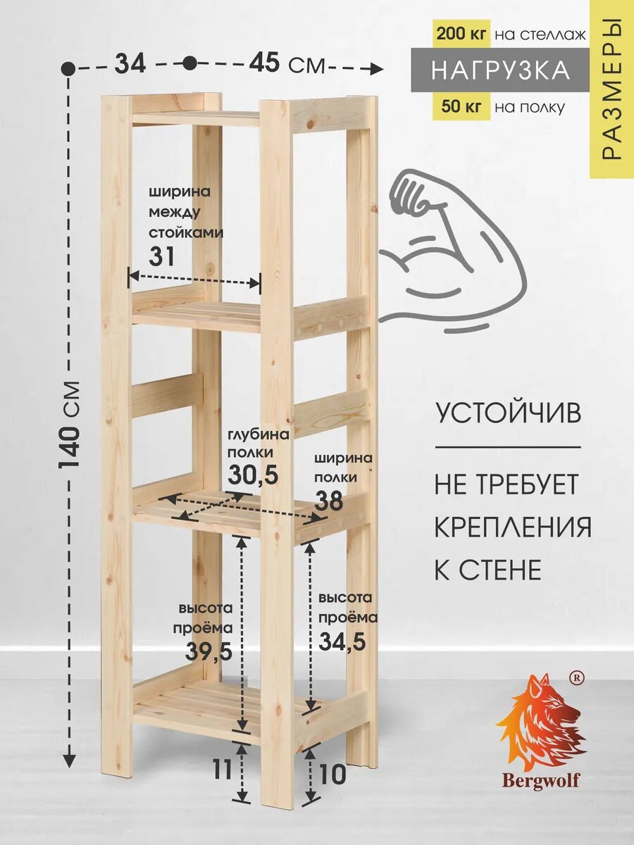 Стеллаж пенал из дерева 140*45*34 см, отшлифован, нагрузка 200 кг интересное: