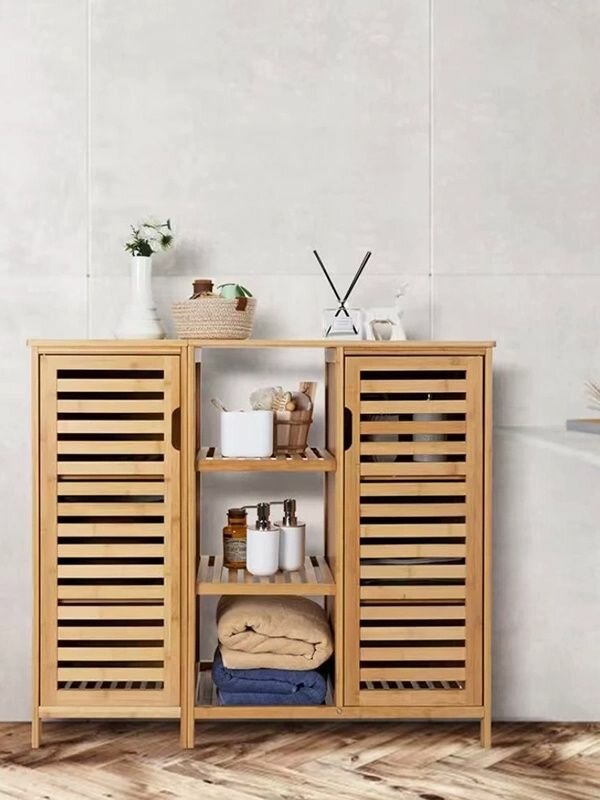 Купить Этажерка из бамбука, стеллаж напольный для ванной Bambuchka, 100x33x87 см