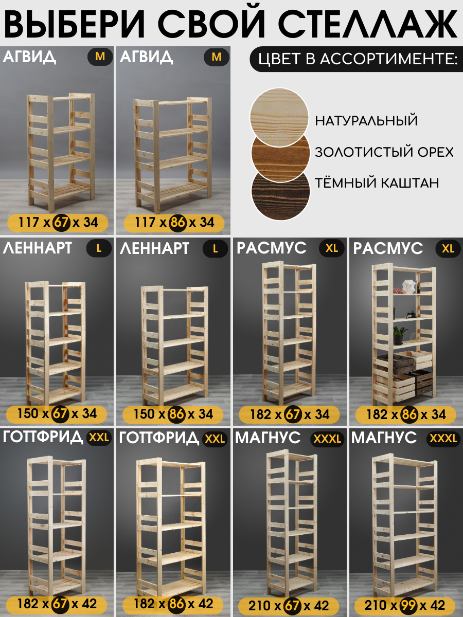Ниже Вы можете прочитать отзывы на Стеллаж деревянный 150х67х34 см, отшлифован, 5 полок, нагрузка 250 кг, ознакомится с подробными характеристиками, посмотреть интересные обзоры и фотографии на Стеллаж деревянный 150х67х34 см, отшлифован, 5 полок, нагрузка 250 кг.