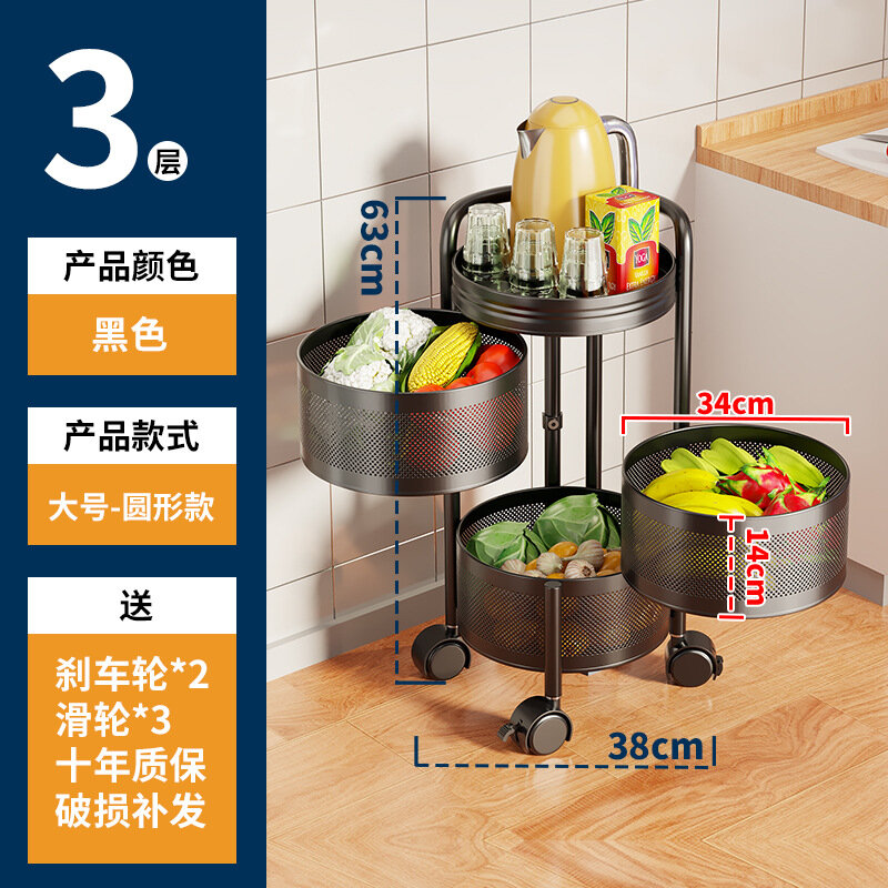 Купить Стеллаж для овощей Tiancheng, углеродистая сталь, круглый, съемный, 3 уровня, черный