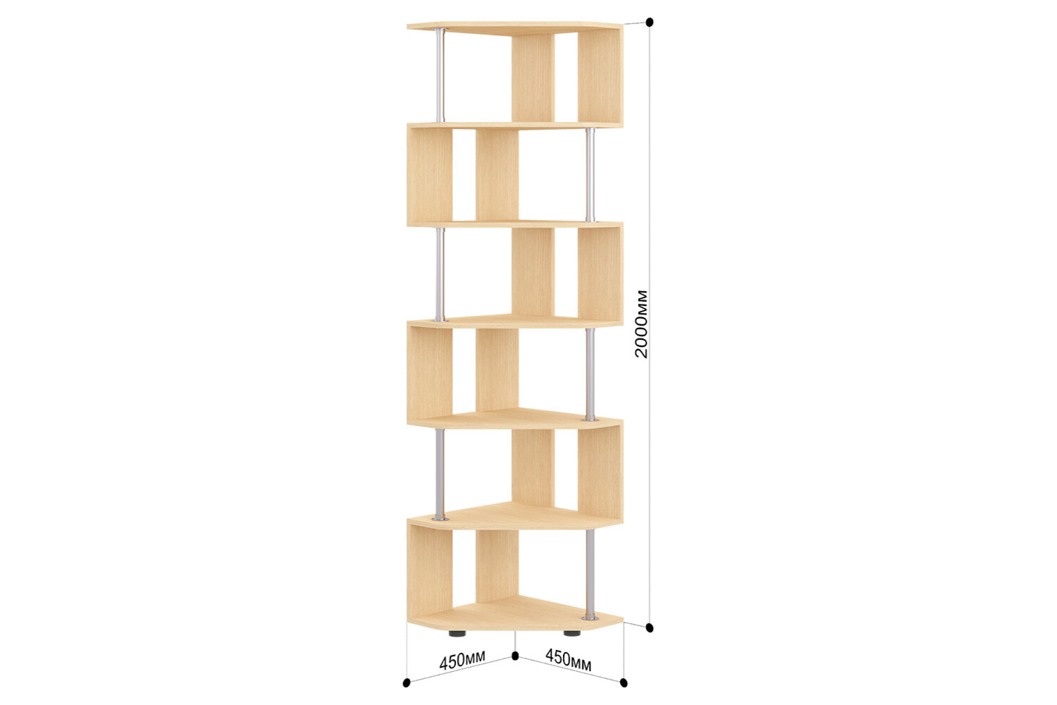 Купить Стеллаж угловой МК"Пирамида СПУ-3, 6 полок, цвет сонома, 200х45х45 см