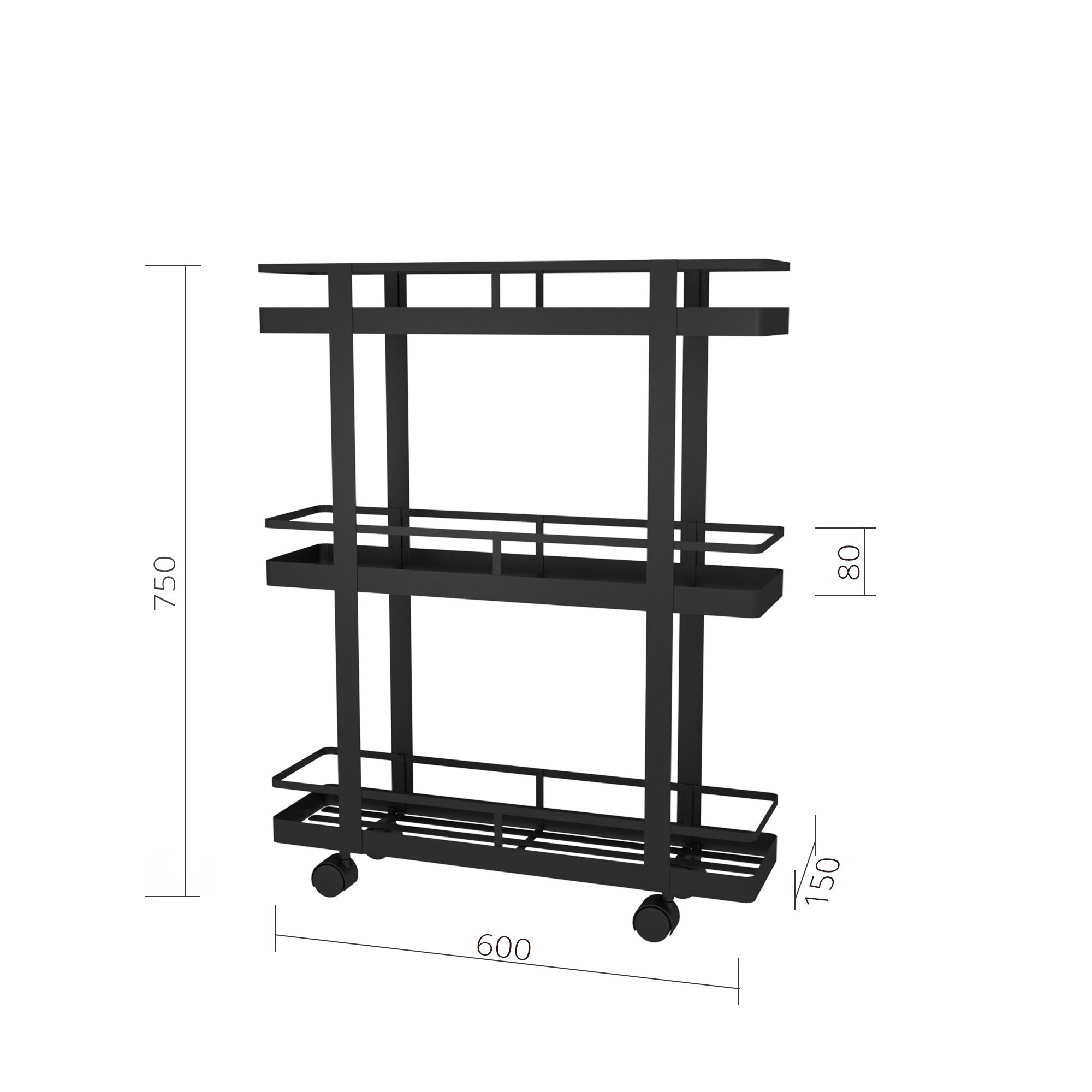 Купить Этажерка для ванной, на колесиках, Mags, 60 х 15 х 75см, 3 полки, черный матовый