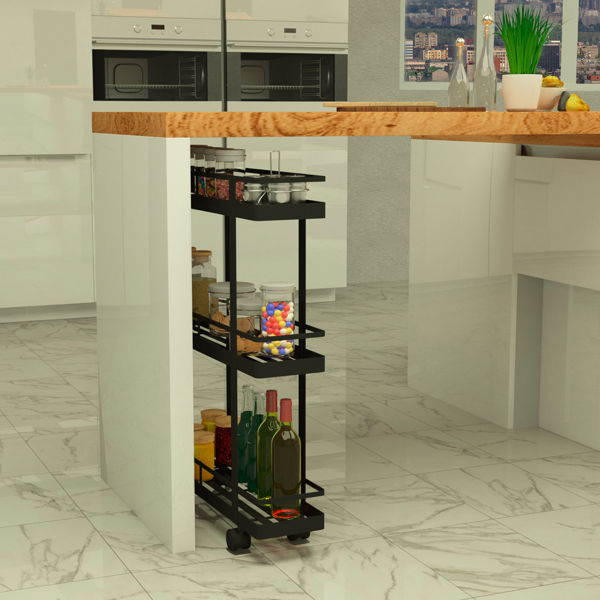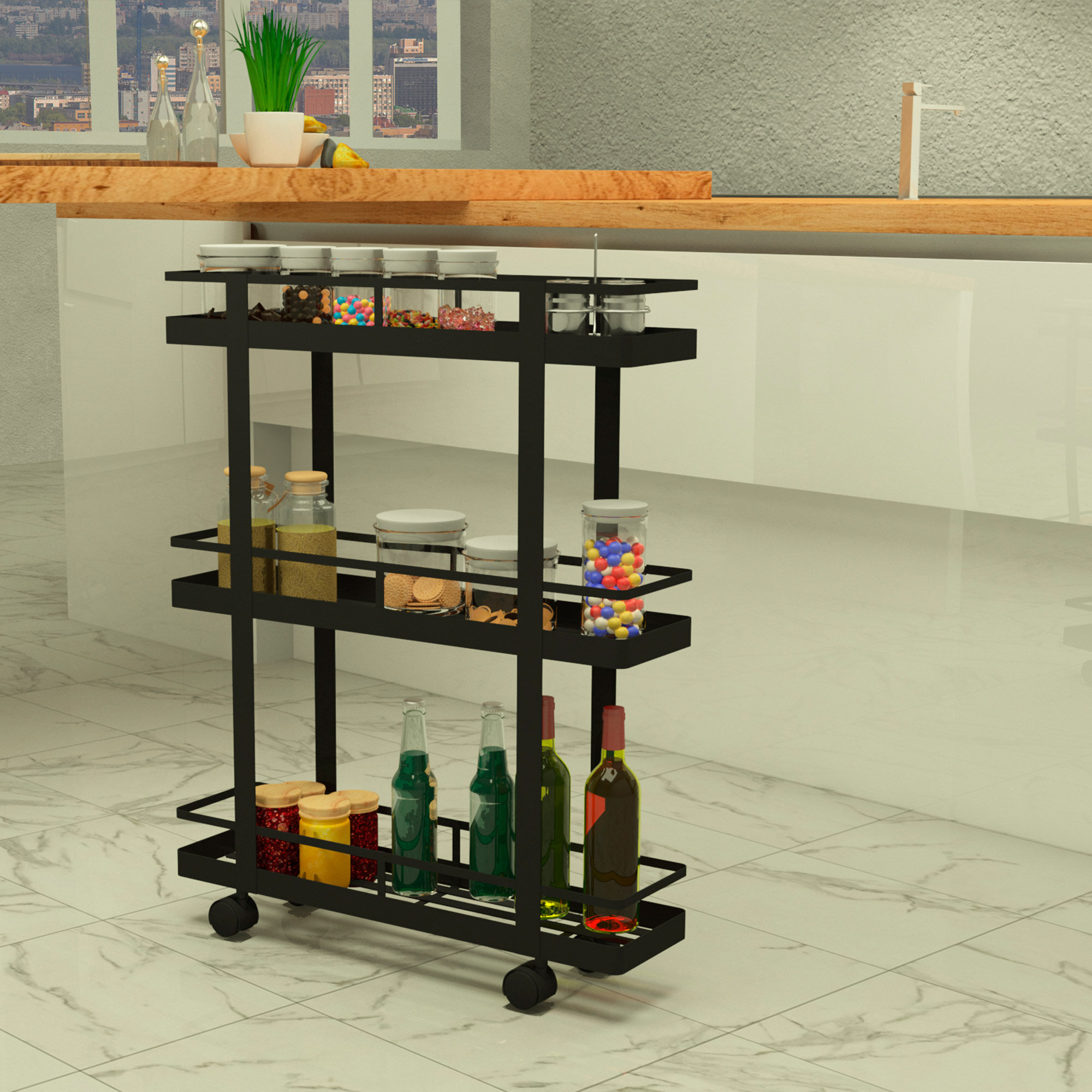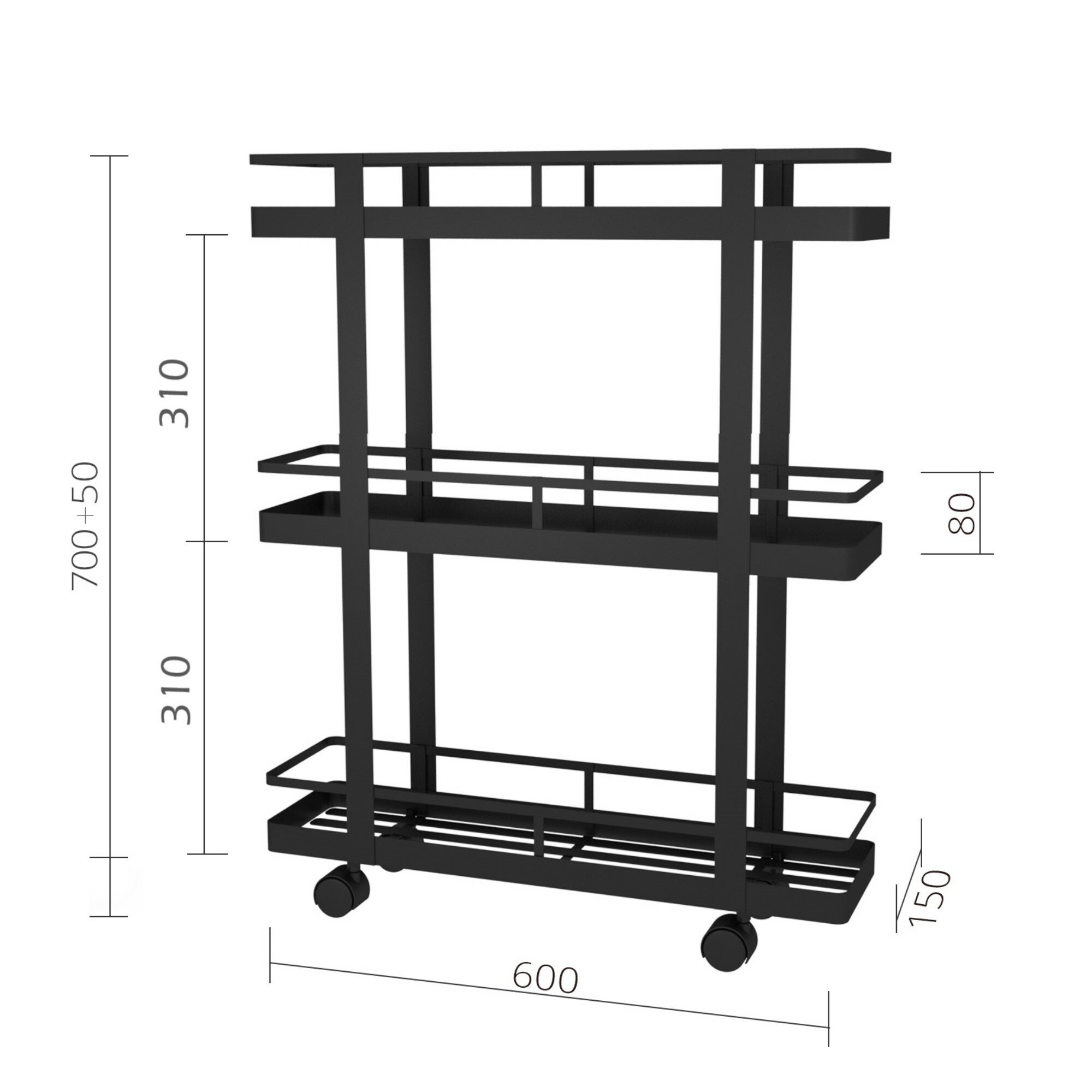 Этажерка для ванной, на колесиках, EASY-SYSTEM 60х40х85 см черный муар / этажерка для игрушек / полки для кухни