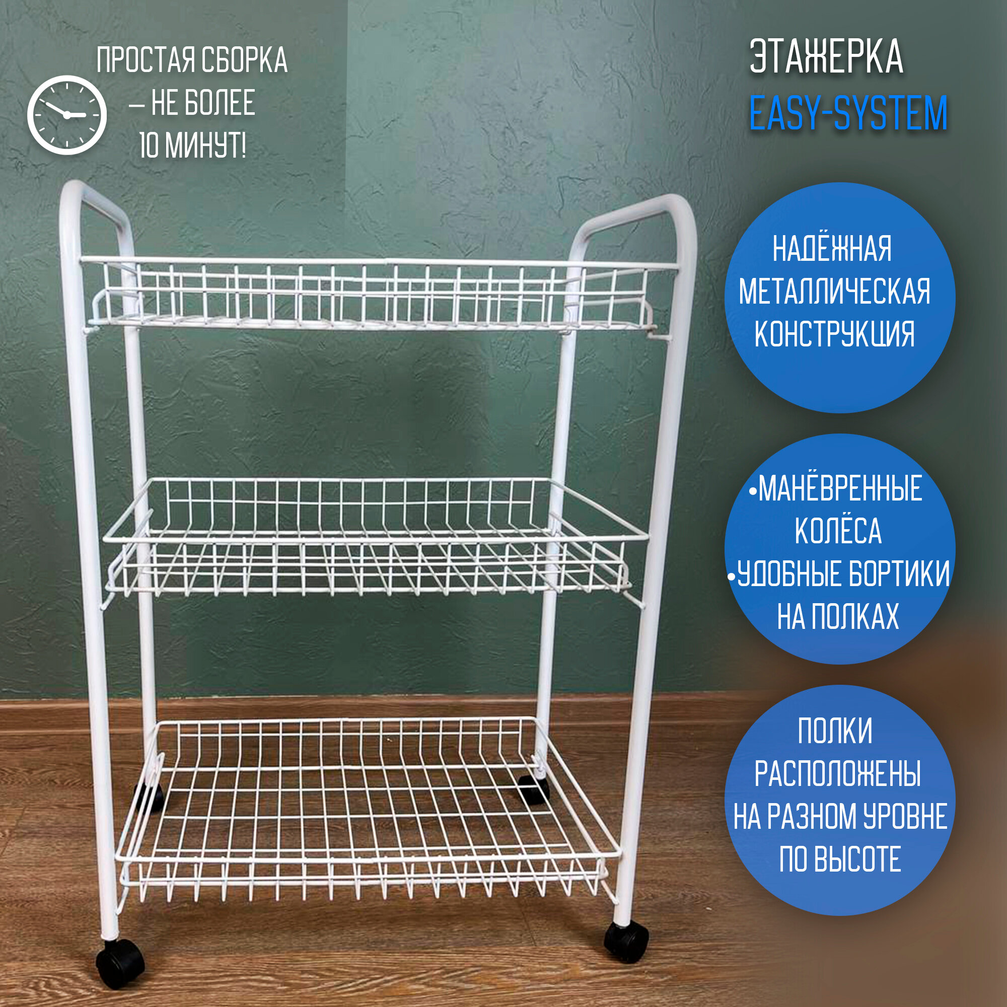 Купить Этажерка для ванной, на колесиках, EASY-SYSTEM 60х40х85 см белый / этажерка для игрушек / полки для кухни