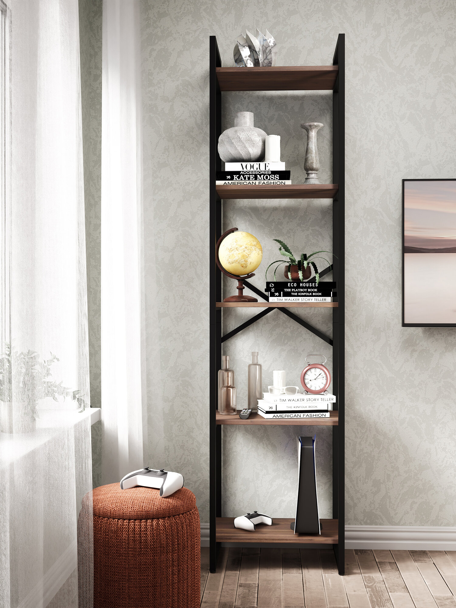 Купить Стеллаж SHARLI-45, 5 полок, металлический каркас, крепление к стене, цвет Американский орех 180 х 31 х 45 см