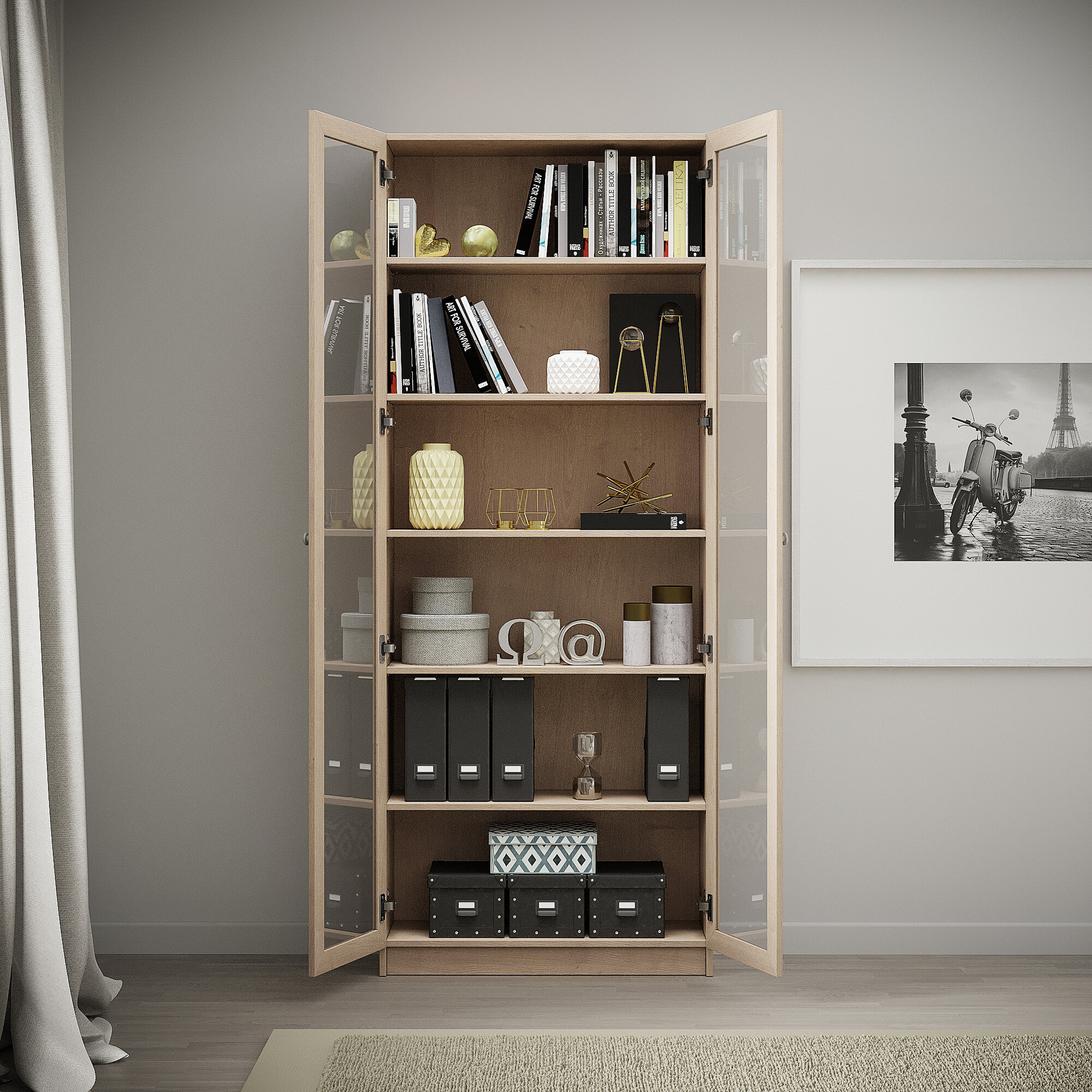 Шкаф стеллаж для книг с полками Билли 11 Дуб Сонома 120*30*202 ЛДСП со стеклянными дверцами