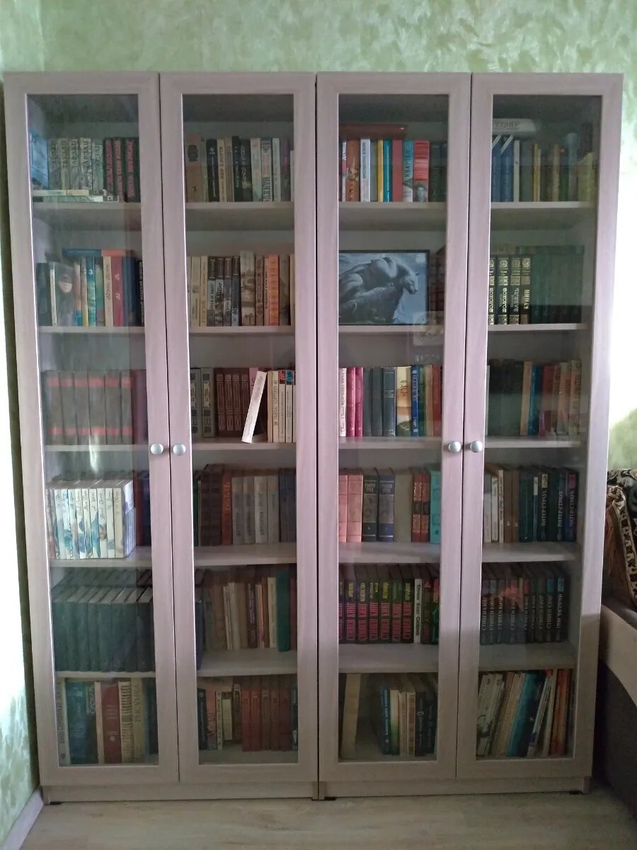 Шкаф стеллаж для книг с полками Билли 12 белый 120*30*202 ЛДСП со стеклянными и глухими дверцами