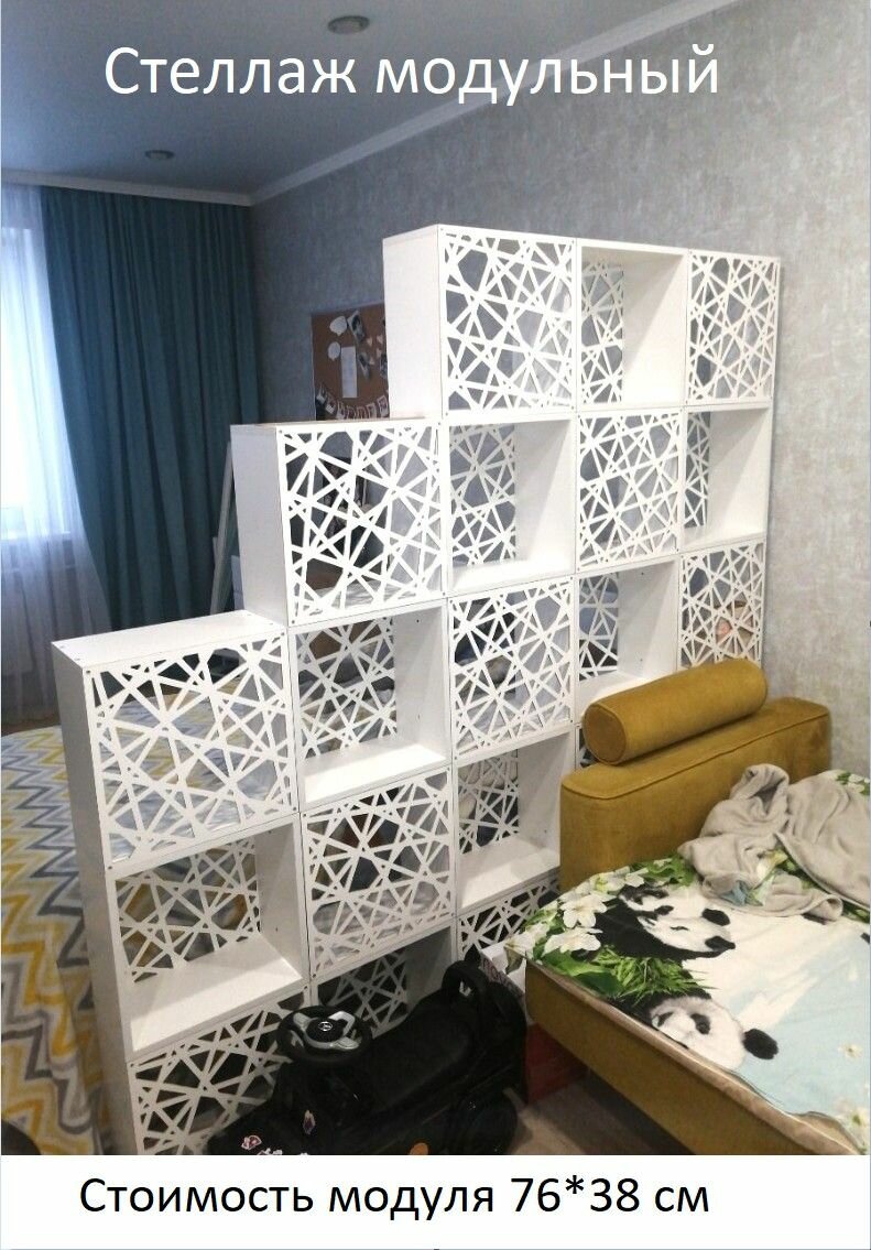 Стеллаж модульный напольный для зонирования комнаты. Модуль 76*38 см интересное: