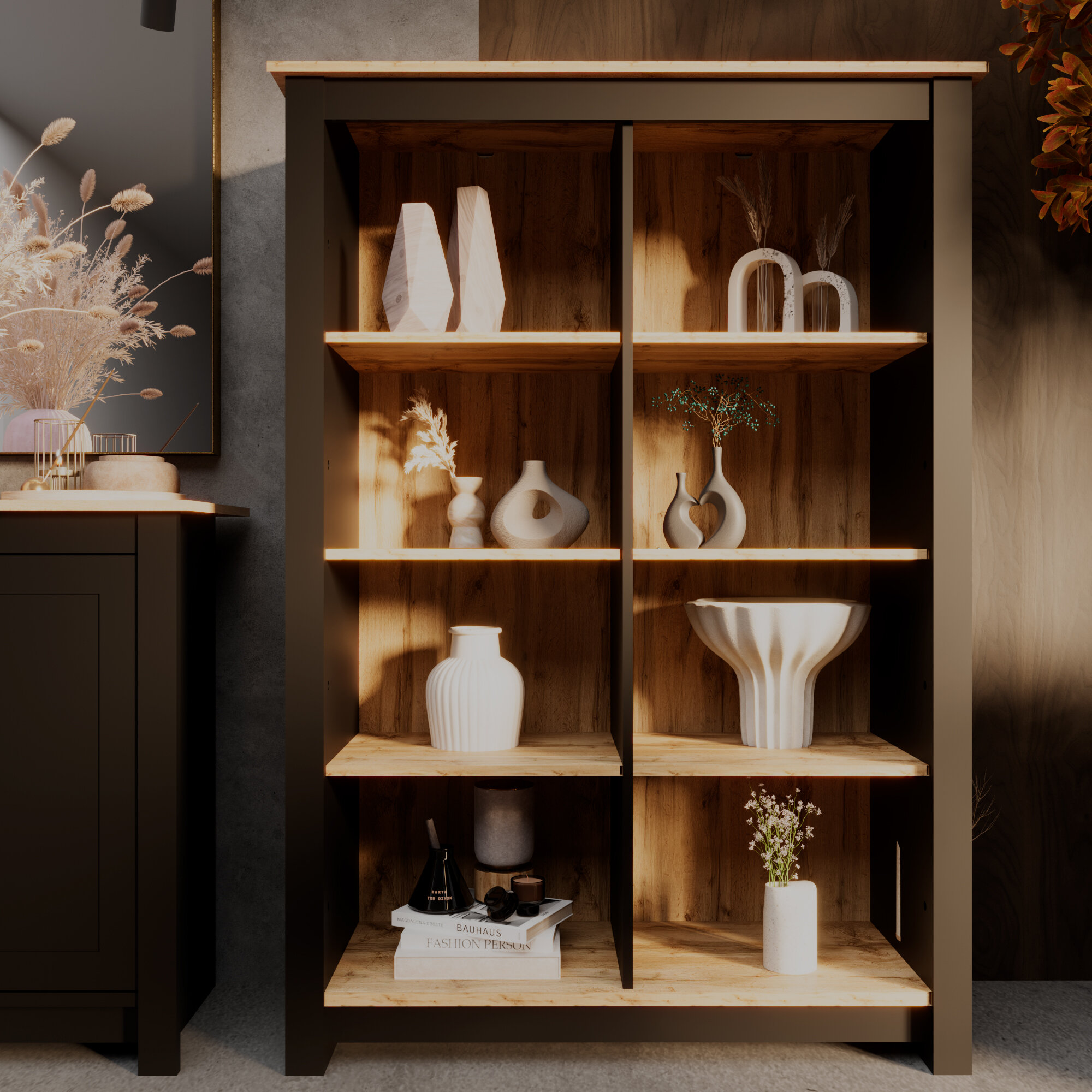 Шкаф-стеллаж Moldon ТМ ДЭФО 63x44x158, дуб натюрель / черный графит