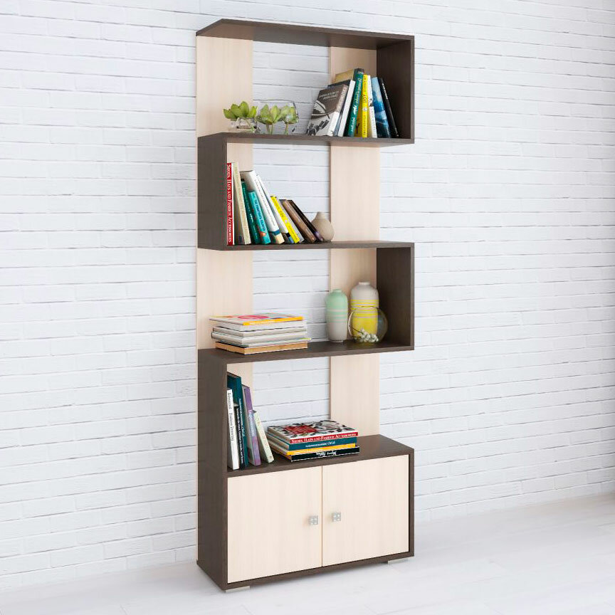 Стеллаж Ромео-4, Венге Цаво/Дуб молочный, ЛДСП, с открытыми и закрытыми полками, 1800х800х250, ТЭКС
