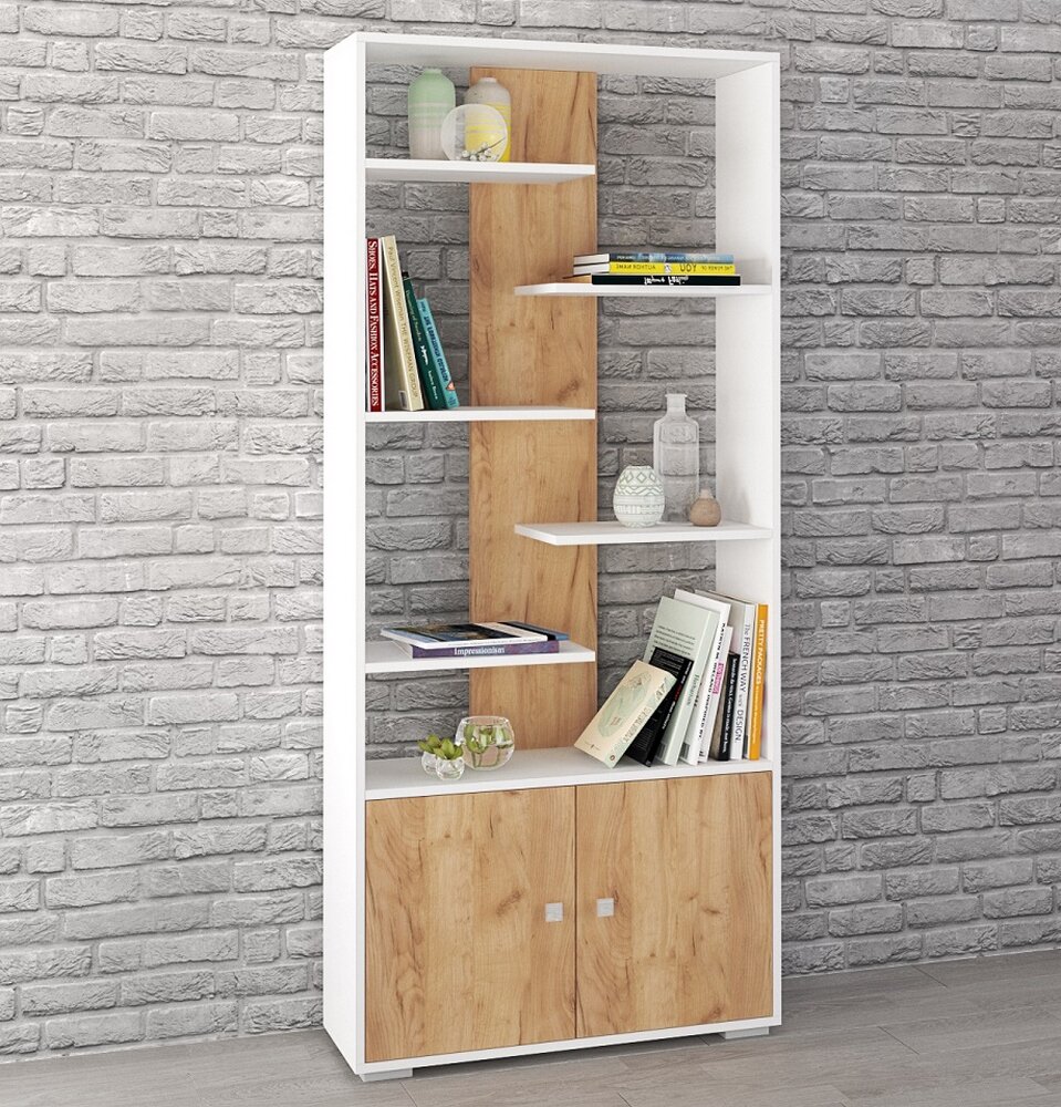 Стеллаж, 1800x700x250 мм – ЛДСП Дуб Крафт золотой и Белый, отдельно стоящий