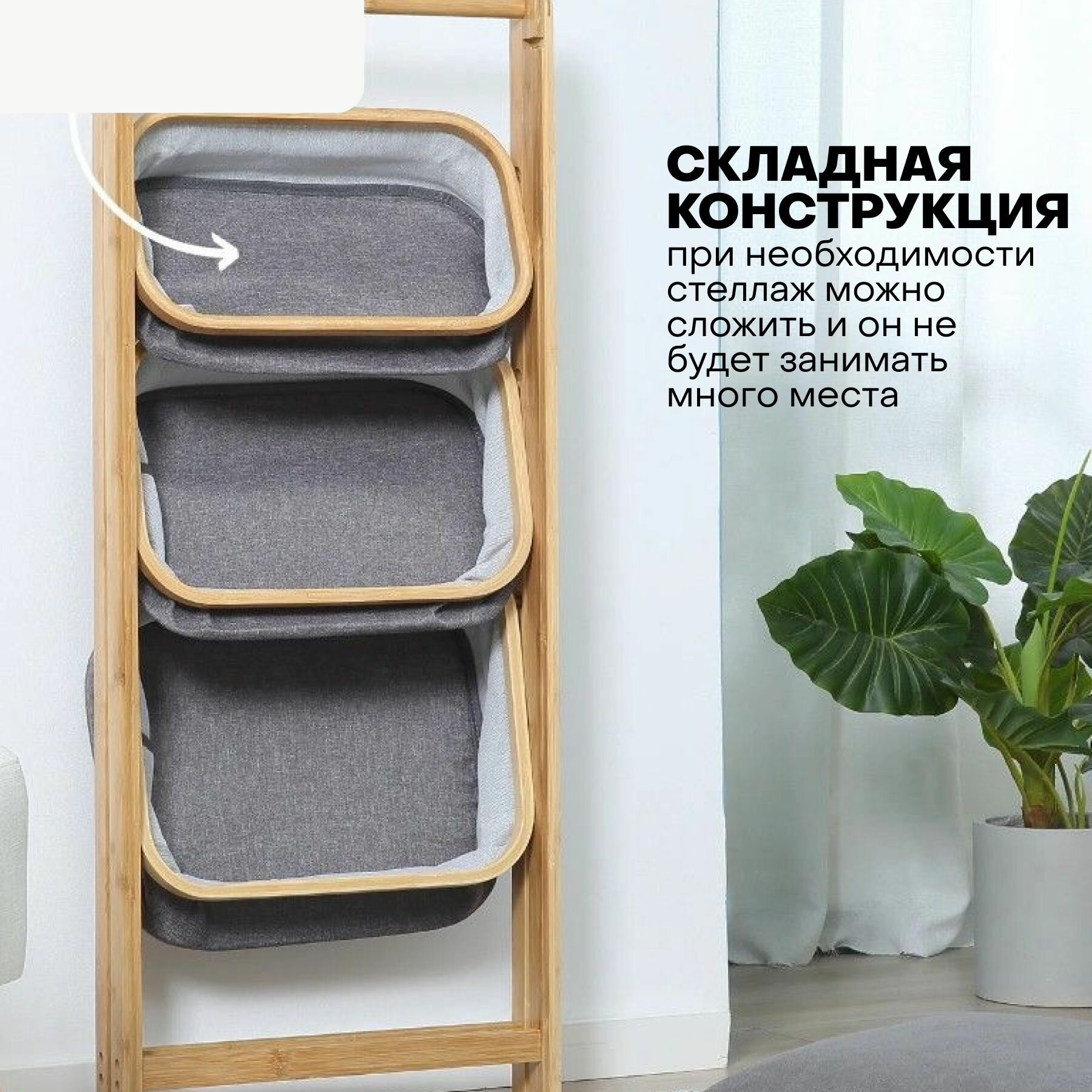 Стеллаж деревянный Нонтон Симпл графит 40.2x51.4x190 см, с ящиками