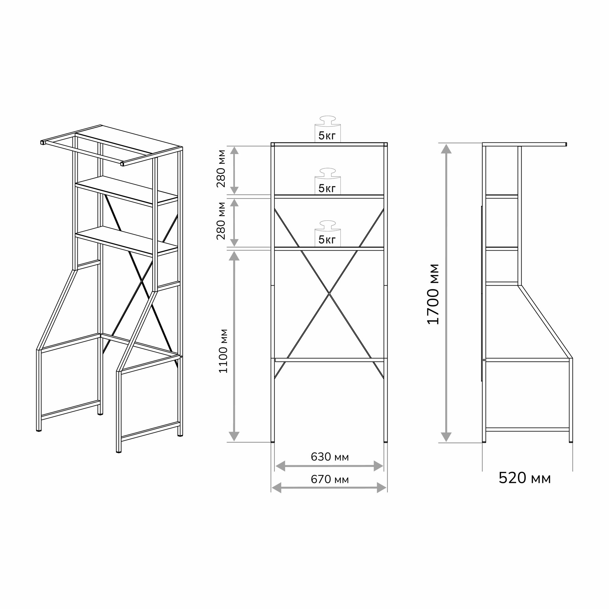Стеллаж над стиральной машиной Ulitka с ЛДСП, металл, цвет черный