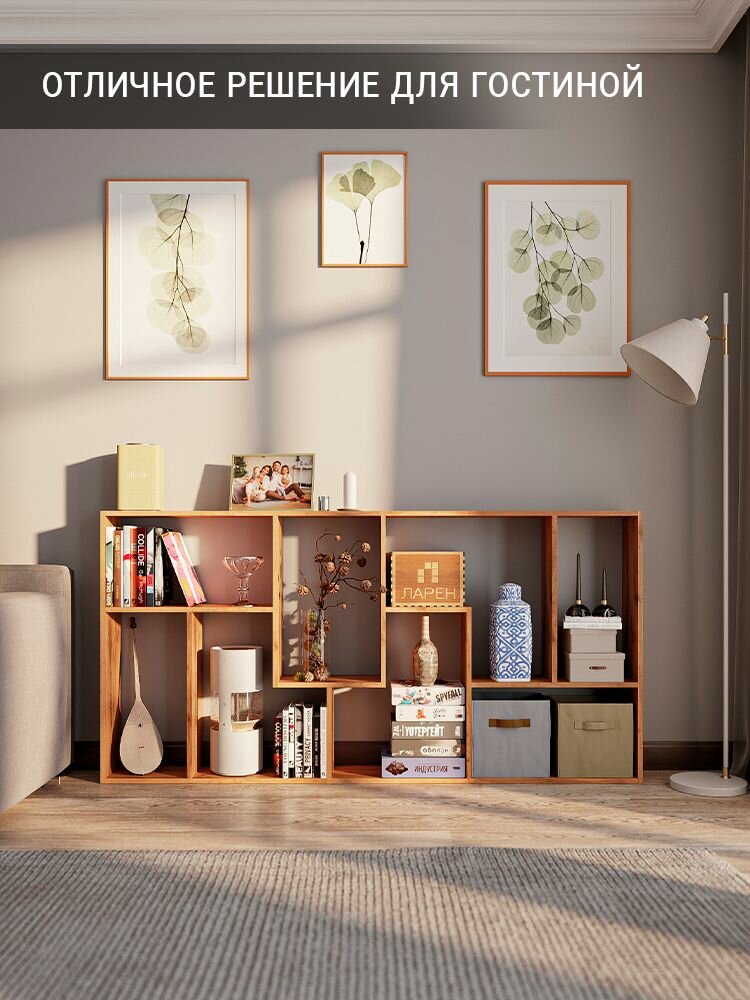 Стеллаж деревянный напольный сонома, 16 ячеек, 140х140х33 см
