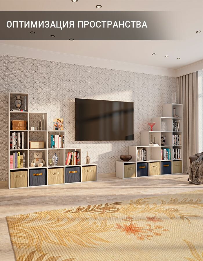 Стеллаж деревянный напольный белый, 16 ячеек, 140х140х33 см