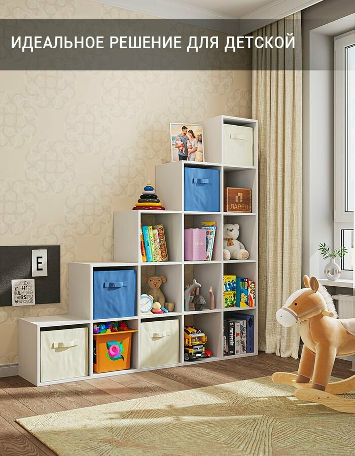 Стеллаж деревянный белый для книг и игрушек, 105.5х105.5х33 см