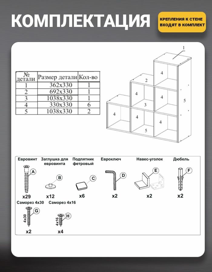 Стеллаж деревянный напольный графит, 16 ячеек, 140х140х33 см