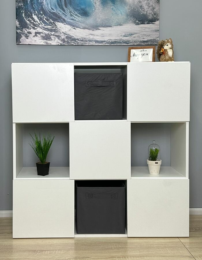 Стеллаж деревянный напольный белый, 16 ячеек, 140х140х33 см
