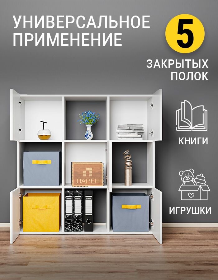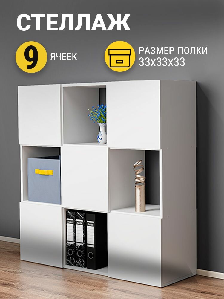СохранитьСтеллаж с дверцами деревянный напольный белый, 9 полок, 105.5х33х105.5 см интересное: