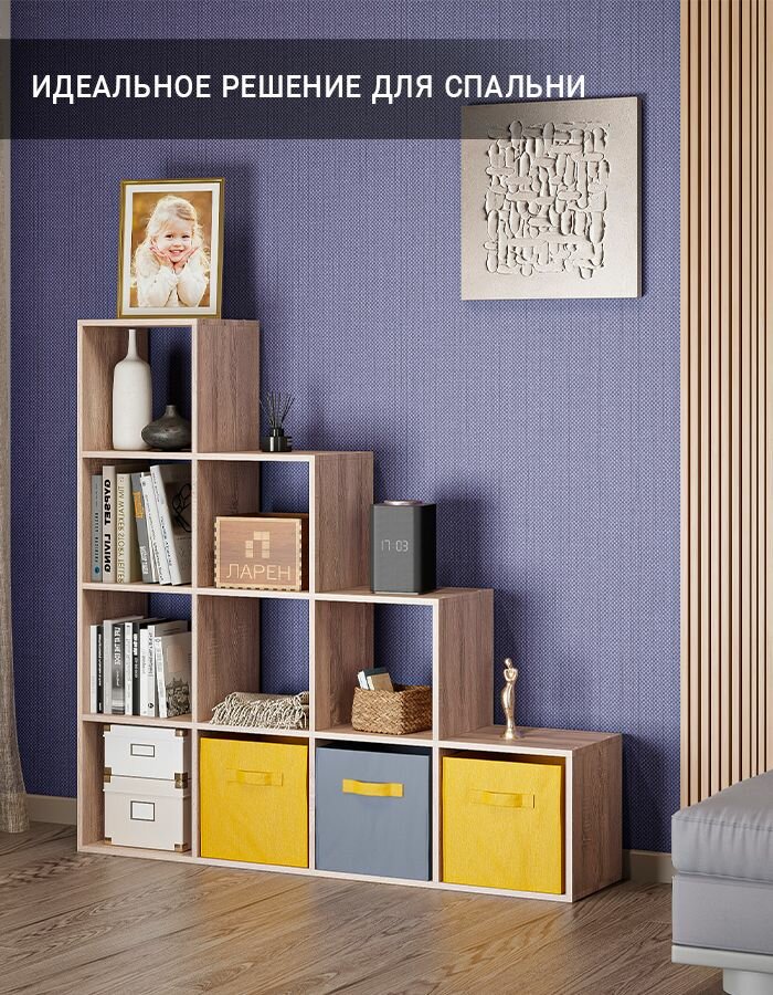 Стеллаж деревянный напольный, цвет дуб сонома, 12 ячеек, 140х105х33 см