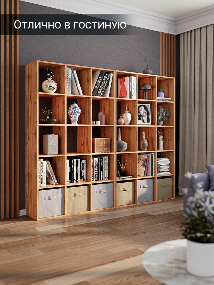 Стеллаж деревянный напольный сонома, 16 ячеек, 140х140х33 см