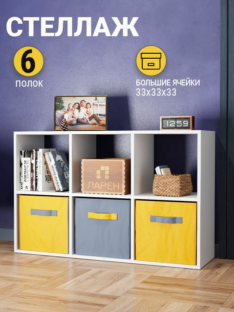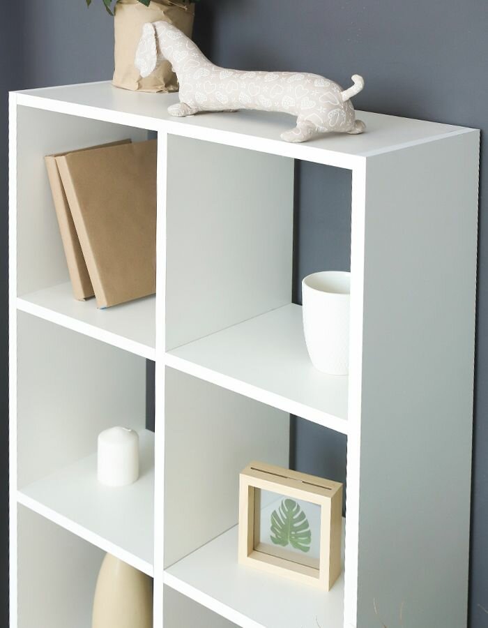Стеллаж деревянный напольный белый, 12 ячеек, 140х105х33 см