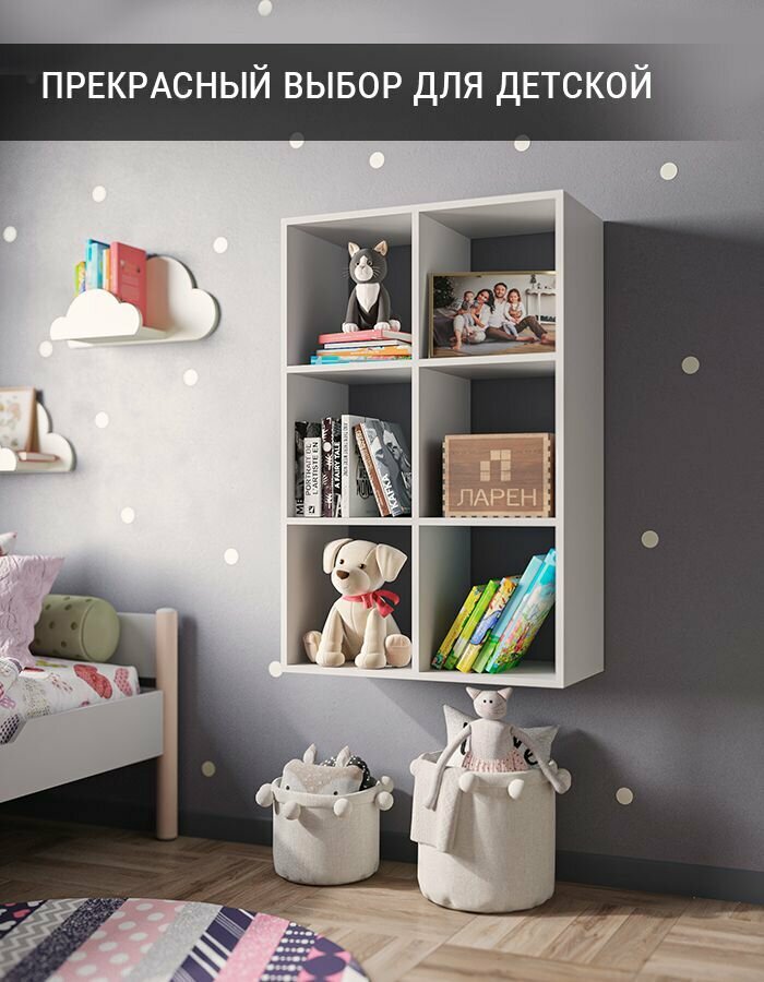 Стеллаж деревянный белый для книг и игрушек, 105.5х105.5х33 см