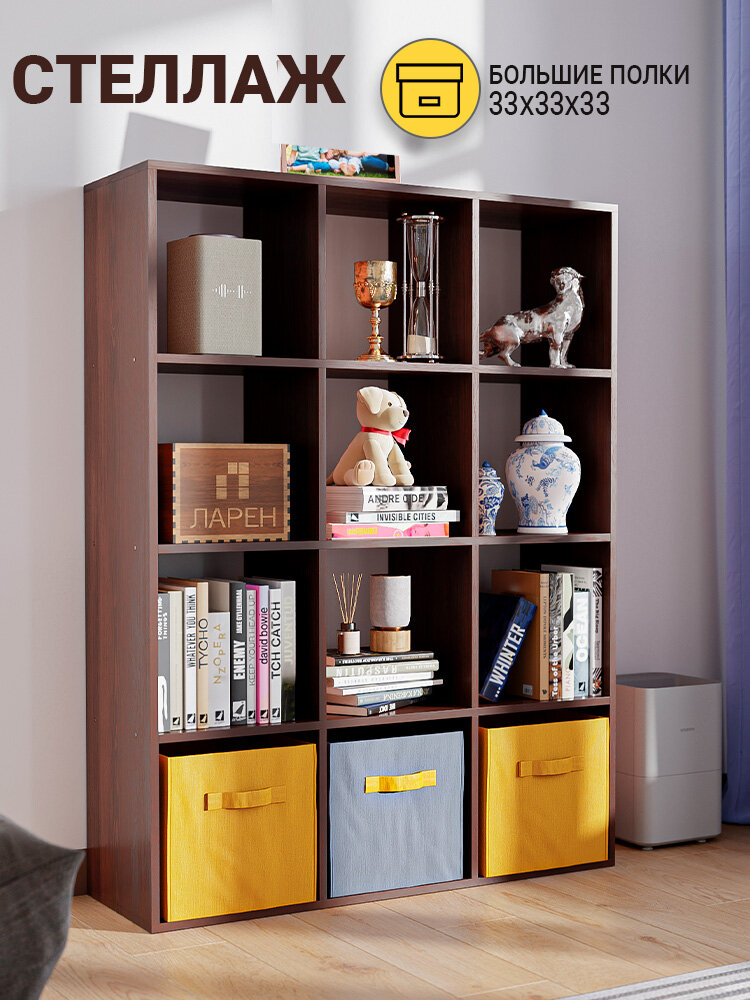 Стеллаж деревянный напольный венге, 16 ячеек, 140х140х33 см