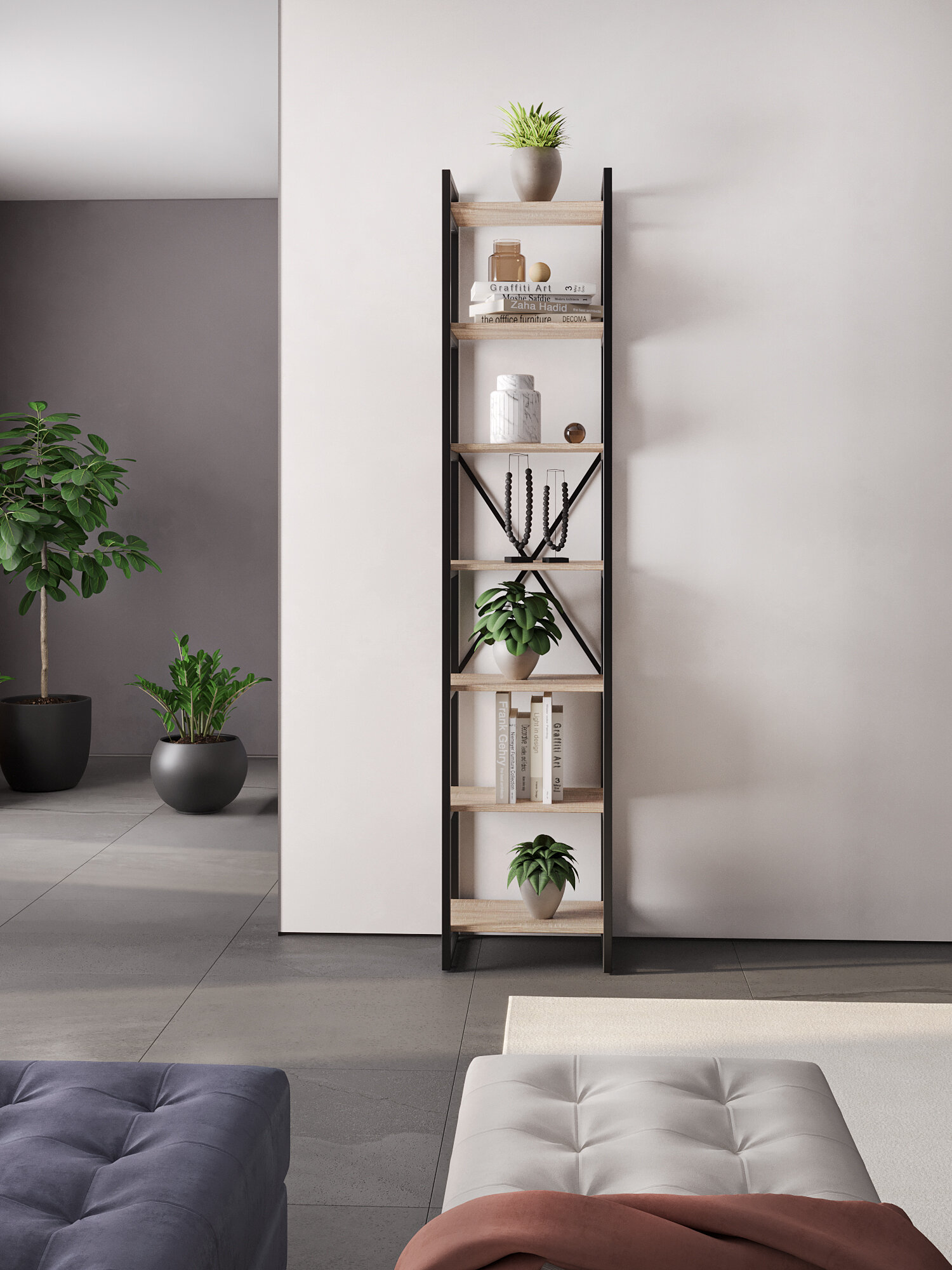 Стеллаж в стиле ЛОФТ BRUNO-45 7 полок (210х45х34см) Дуб Вотан ( Дуб Золотой, Наварра)