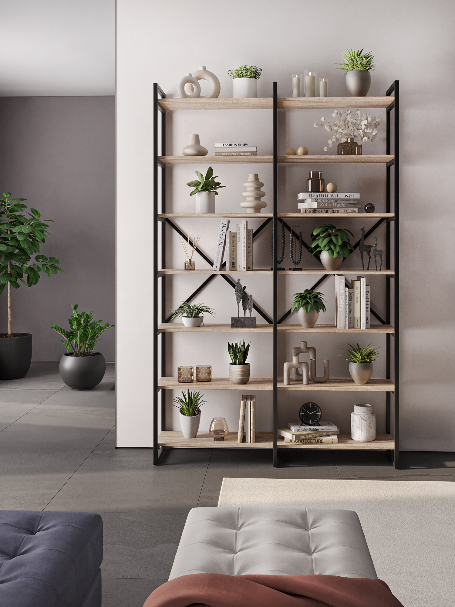 Стеллаж в стиле ЛОФТ BRUNO DOUBLE 8 полок (240х134х34см) Дуб Сонома
