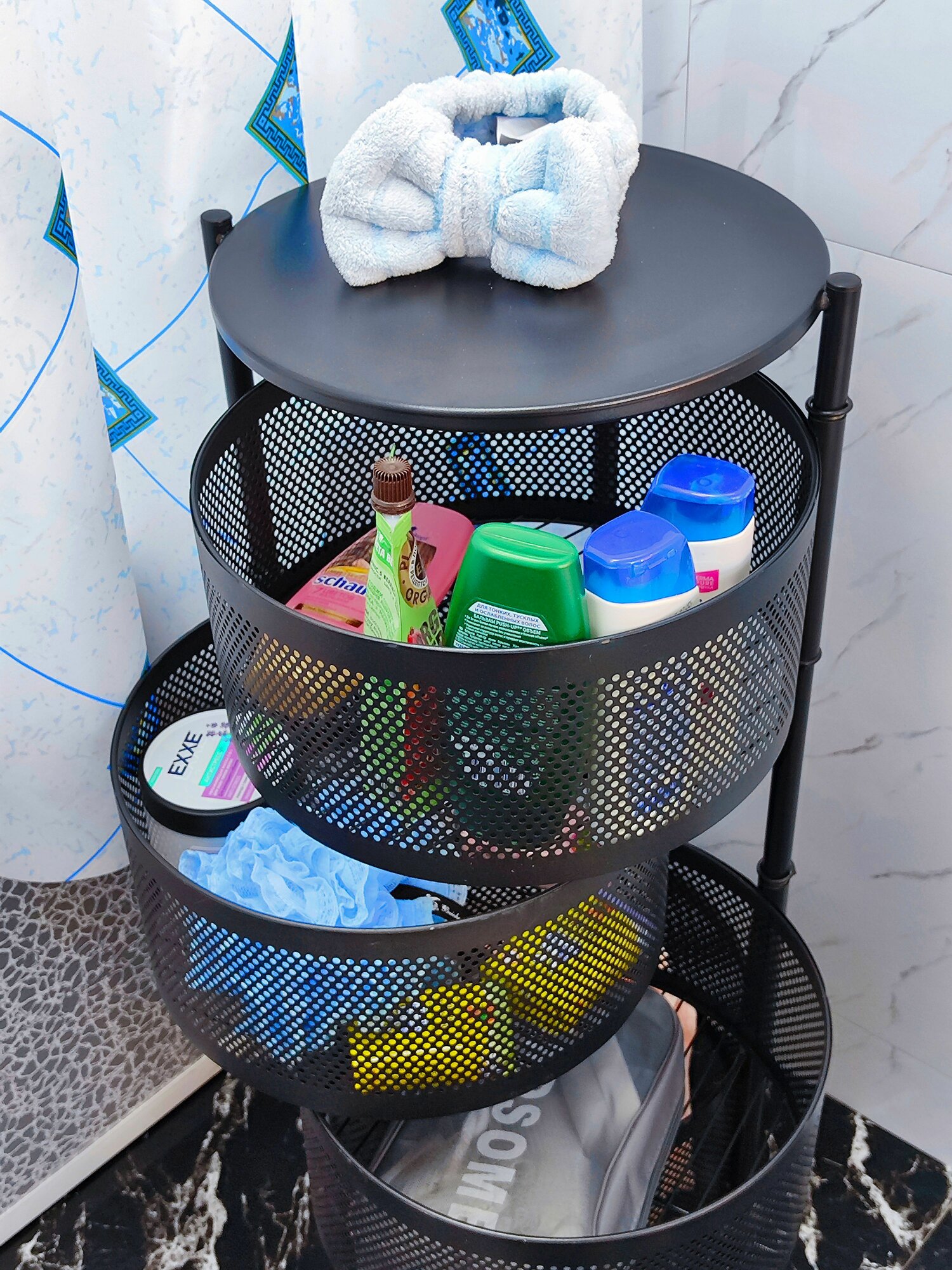 Этажерка металлическая 3-х ярусная 26*26*65 см квадрат поворотная черный Baizheng
