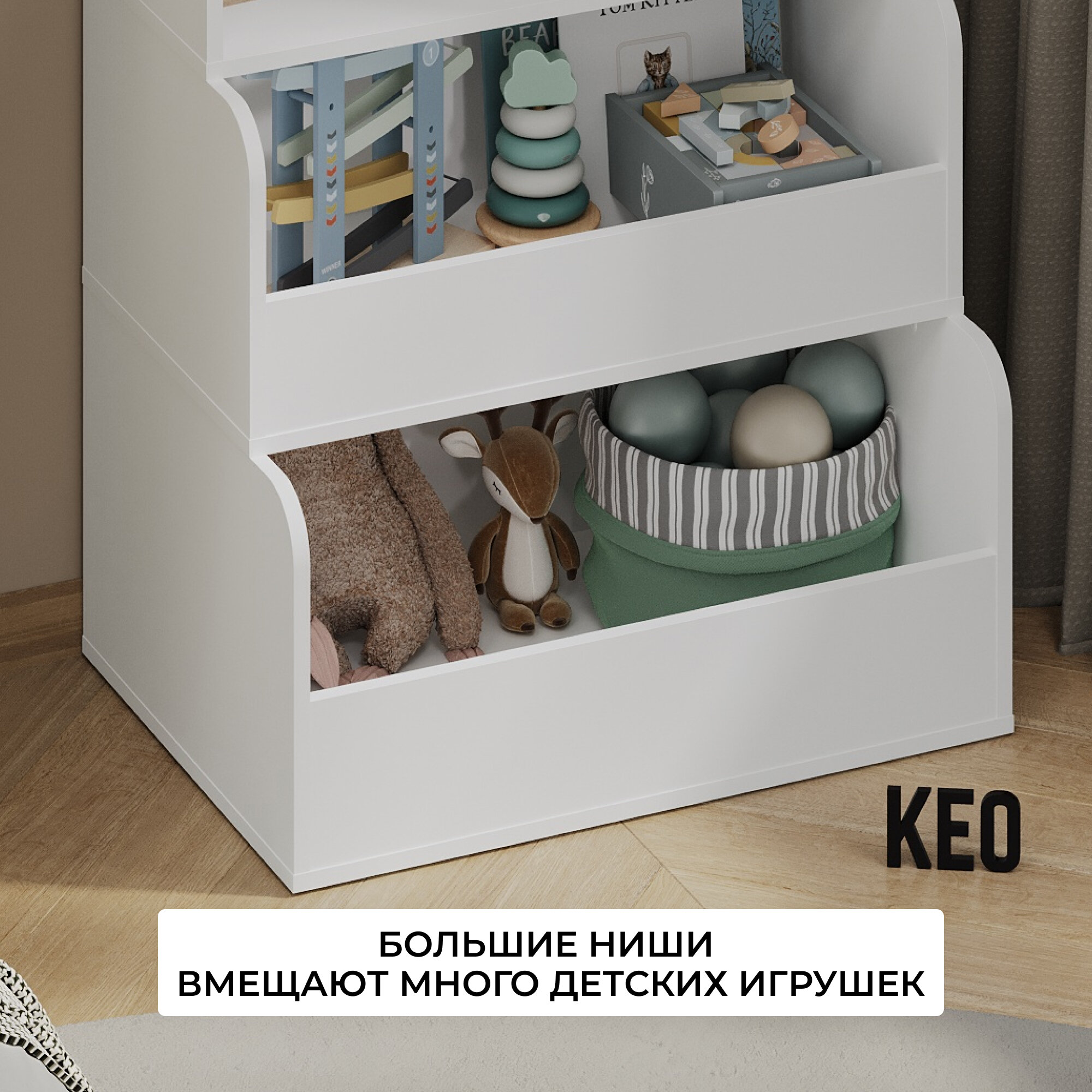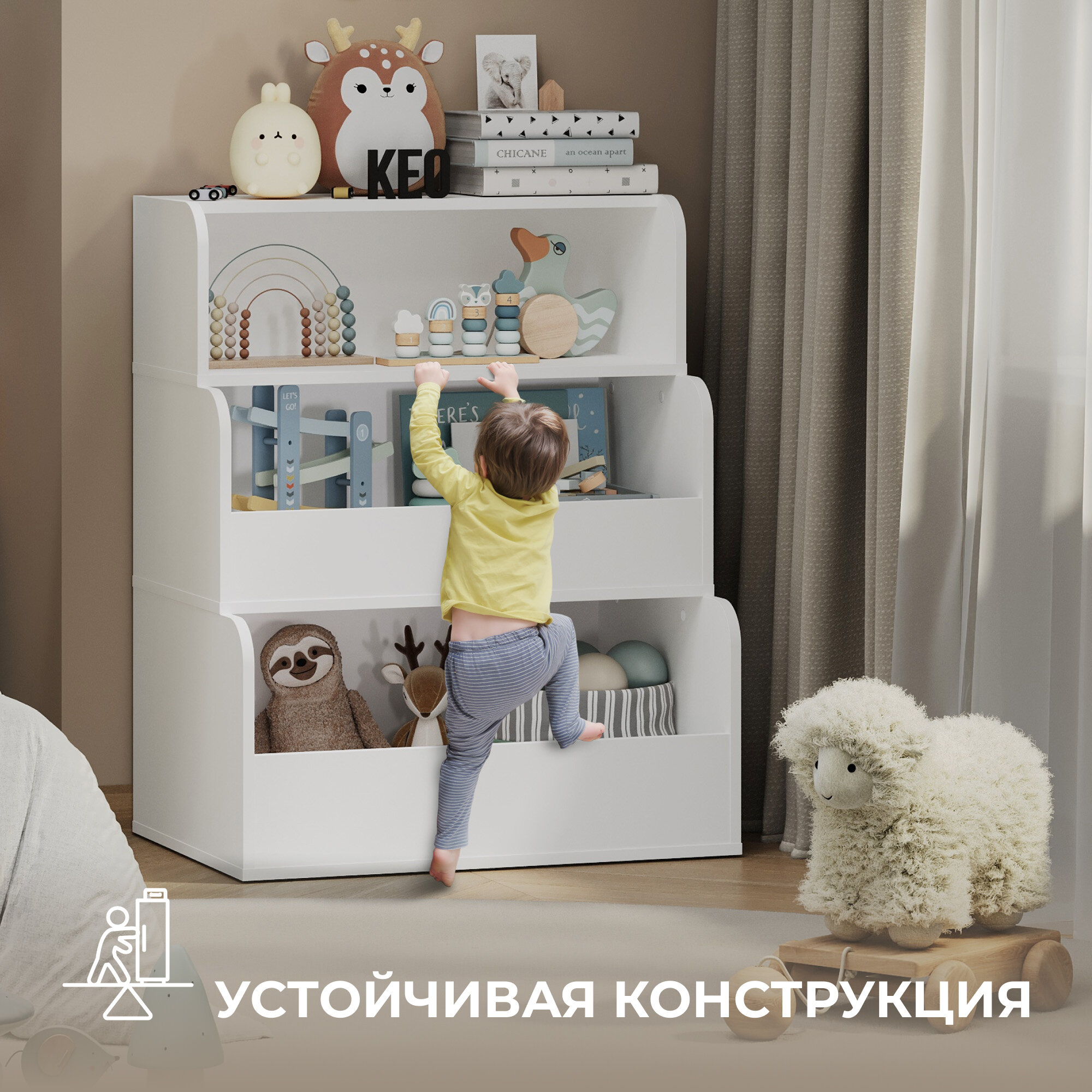 Стеллаж напольный Кео СТЖ-504 белый с ящиками полками для игрушек книг в детскую для балкона кладовой ванной интересное: