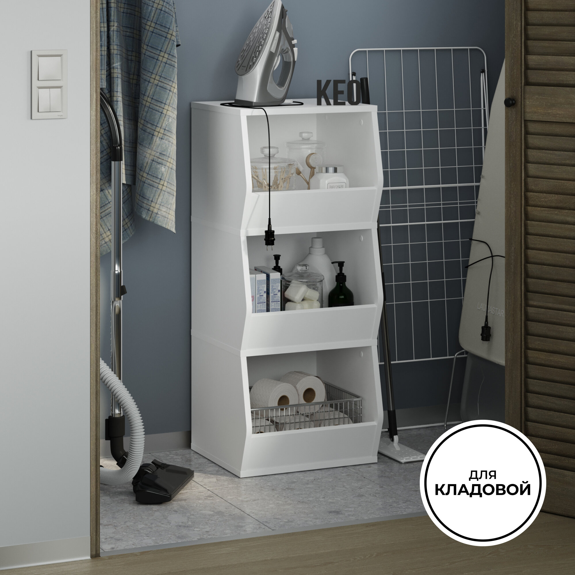 Стеллаж напольный Кео СТЖ-431.1 белый узкий с ящиками для игрушек книг в детскую для балкона кладовой ванной интересное: