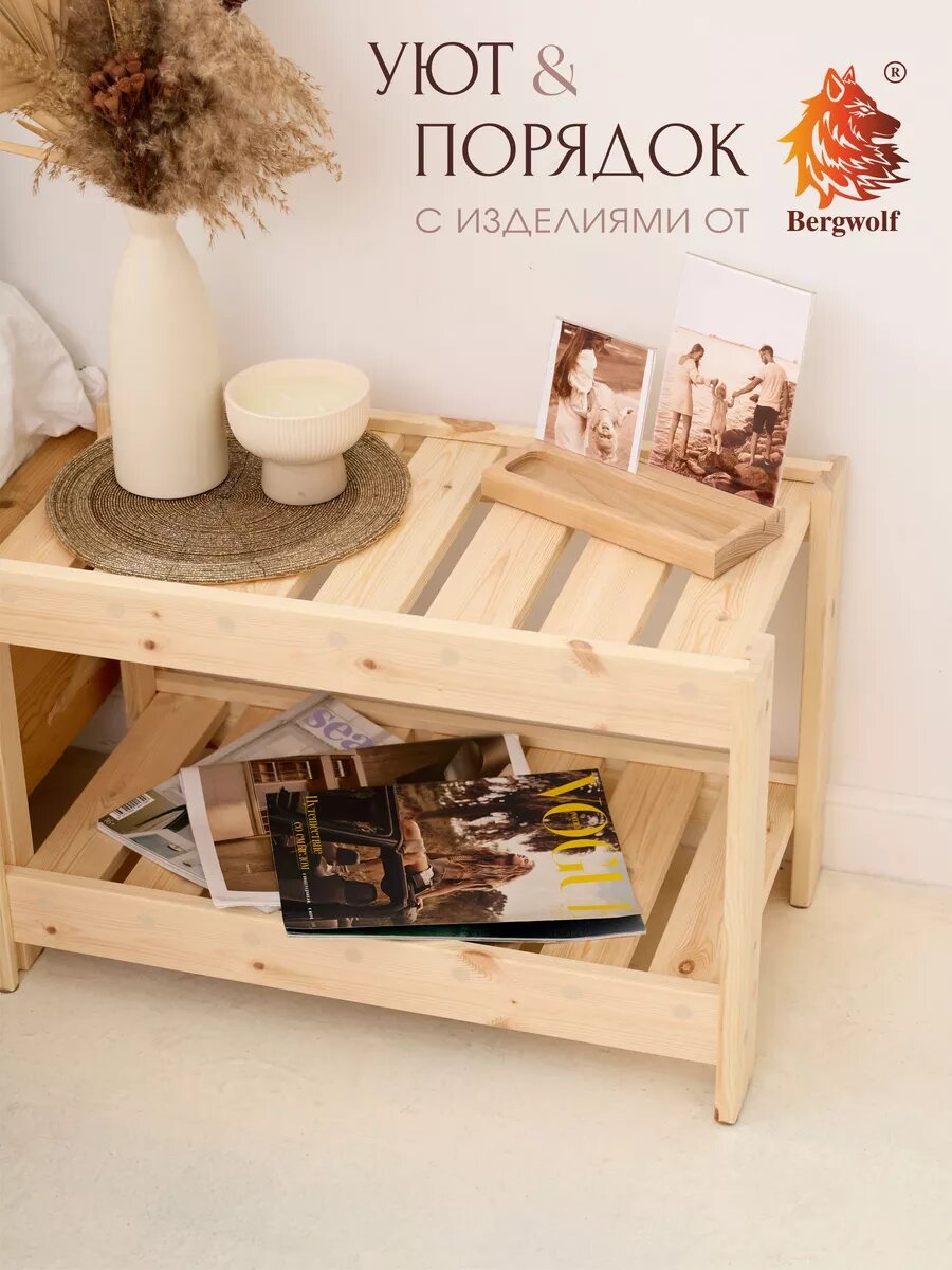 Стеллаж деревянный 2 полки повышенной прочности, 107*36*40 см, покрыт маслом