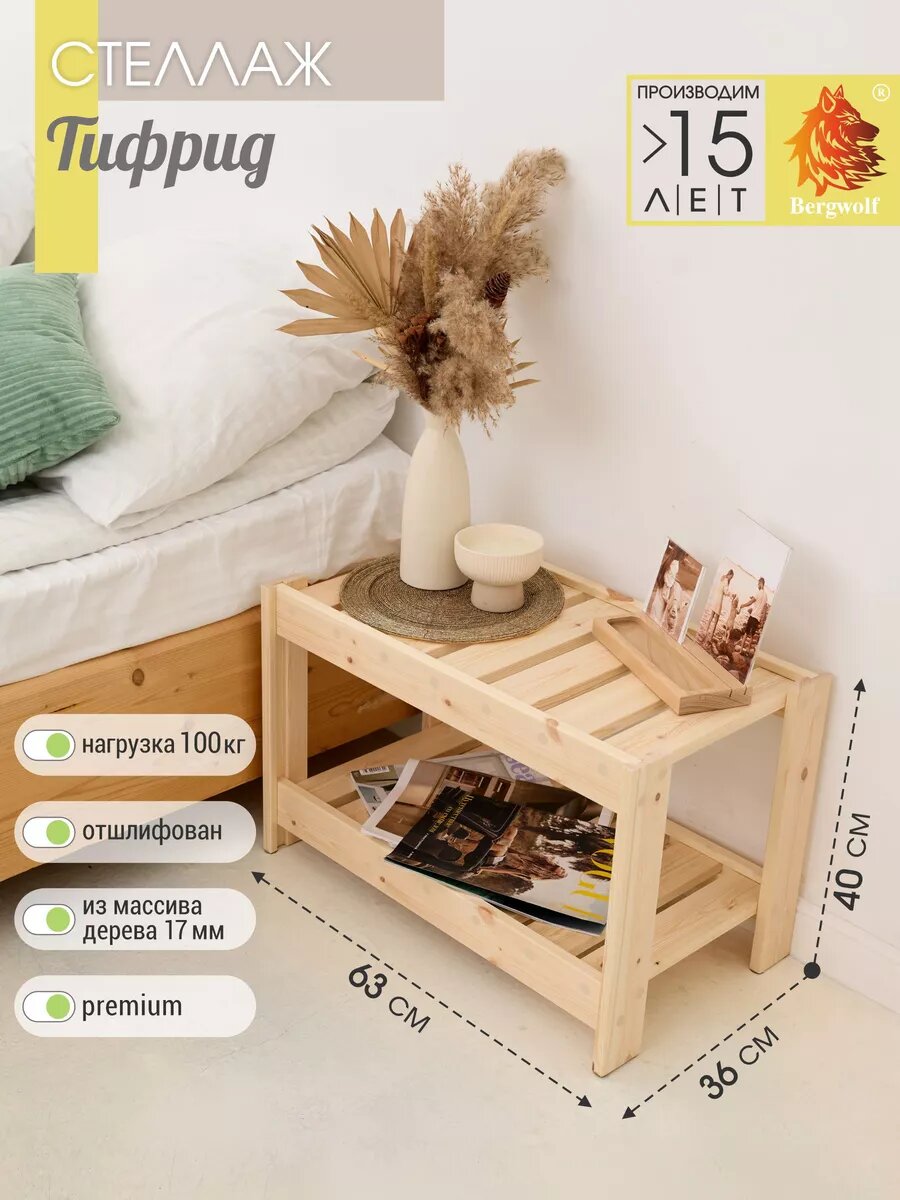СохранитьСтеллаж деревянный 2 полки 40*63*36 см, отшлифован интересное: